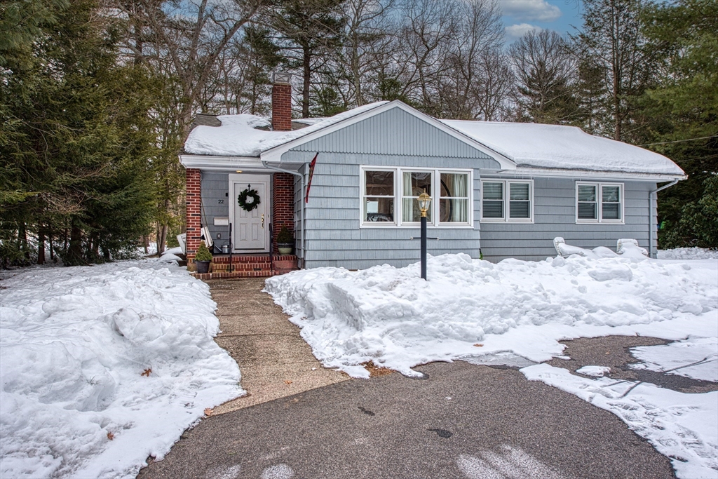 22 Ames Court is a charming 3-bedroom, 2-bath ranch style home tucked away on a quiet dead-end street just moments from Lake Massapoag, award-winning Sharon schools, parks, playgrounds, and all that the town has to offer. This inviting home features hardwood floors, replacement windows, spacious living room with fireplace, dining room, and updated kitchen, plus a spacious finished lower level, with family room and office for flexible living. Set on over a half-acre with a detached two-car garage, this property offers comfort, space, and an unbeatable location.
