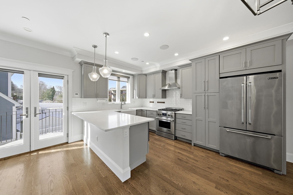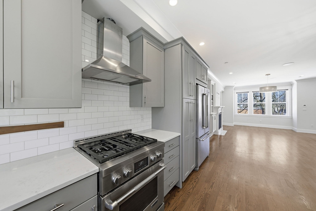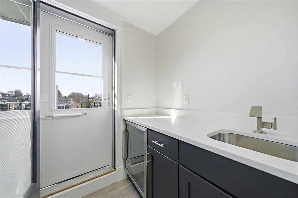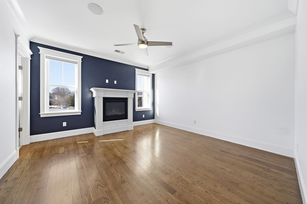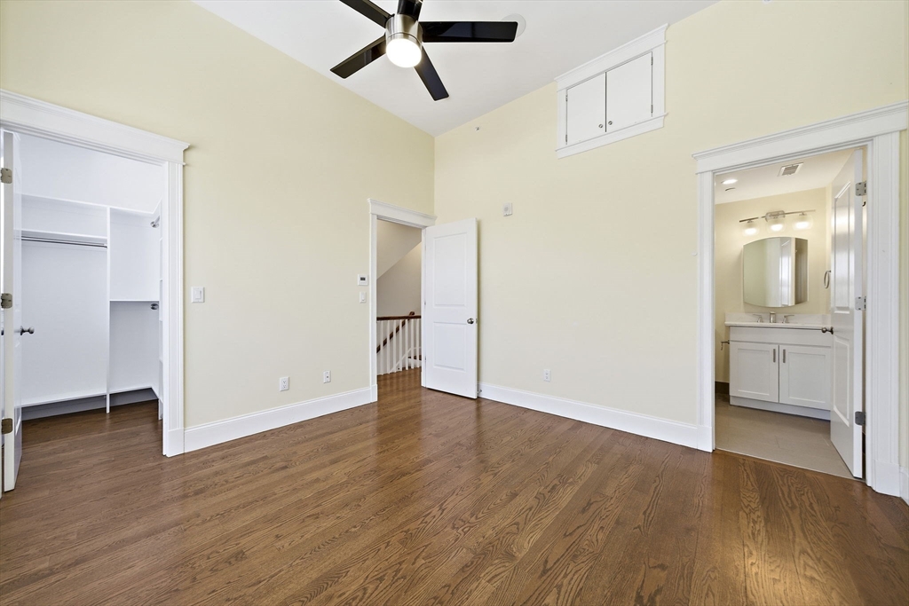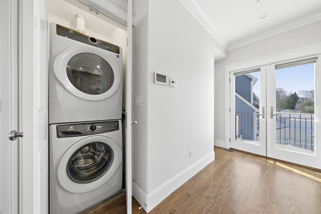 Enjoy Dorchester's Neponset neighborhood with a heated garage and a second deeded parking spot! This 'Like New' 2017 construction four level townhouse is in PRISTINE condition. The first floor has garage access, plenty of storage, a bedroom/office with custom built in Murphy bed, full bath and access to your private fenced in yard. The second floor has a wide open floor plan - chefs quality stainless appliances, quartz counters, high end light fixtures, hardwood floors, dining area, living area with gas fireplace - plus a half bath, laundry and access to your own deck right off the kitchen. The third floor is the master bedroom with it's own gas fireplace and spa-like full bath with a steam shower. The second bedroom also has its own full bath and each bedroom has custom closets. The fourth floor is your place to entertain - a wet bar with mini fridge and access to your private roof deck. Gas heat, bluetooth surround sound, Electrolux washer/dryer included. Open houses Sat & Sun