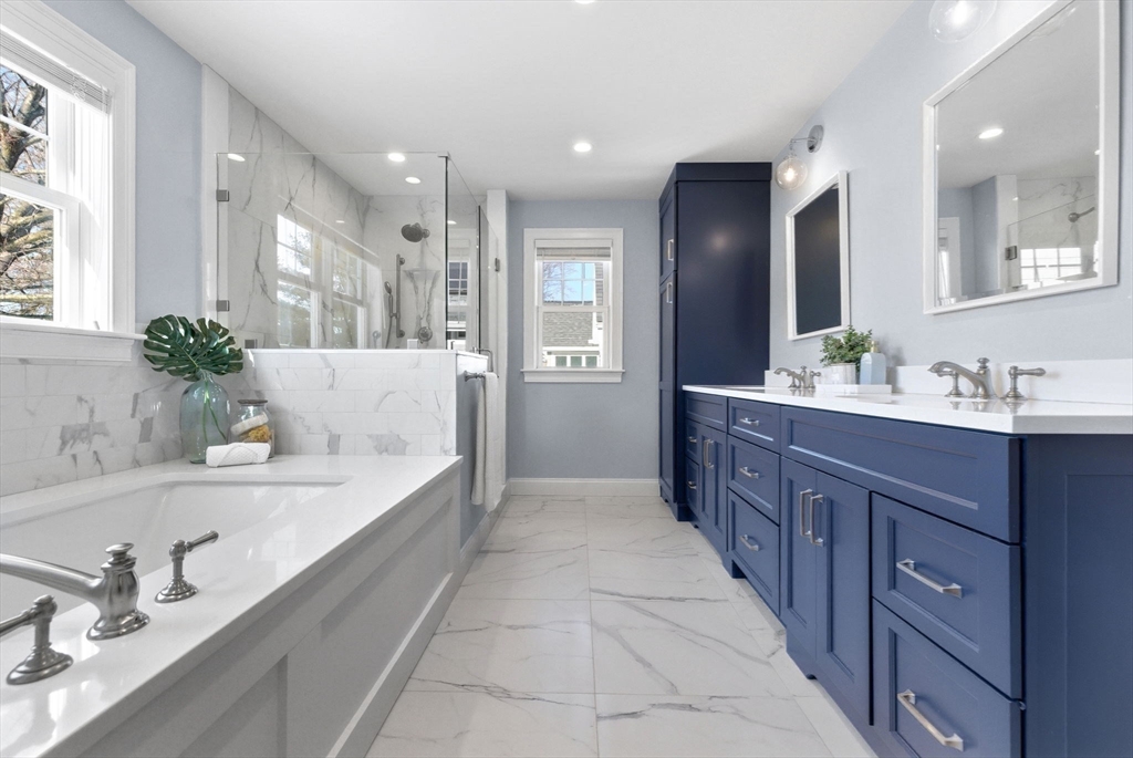 Welcome to 30 Elmhurst Road, a beautifully renovated center-entrance Colonial on a quiet, tree-lined street in sought-after East Arlington. Redesigned w/ a 2022 addition, this home blends modern updates w/ timeless charm. White oak floors and Marvin windows fill the space w/ natural light. The chef’s kitchen features Thermador appliances, induction range, quartz countertops & a cherry island w/ sliders leading to a sizable fenced yard & 14x16 patio. 2 bonus rooms (ideal for dual offices, playroom, sitting room, etc) a formal dining room & a living room w/ built-ins & a cozy wood-burning fireplace complete the main level. Upstairs offers a stunning & oversized primary suite w/ walk-in closets & spa-like bath, plus 2 bedrooms & laundry room. Major 2022 upgrades include plumbing, electrical, heating/cooling, siding & more! Enjoy the Minuteman Bikeway at the end of the road! Closeby Spy Pond, playgrounds, shops, dining & public transportation. Move in and make this stunning home your own!