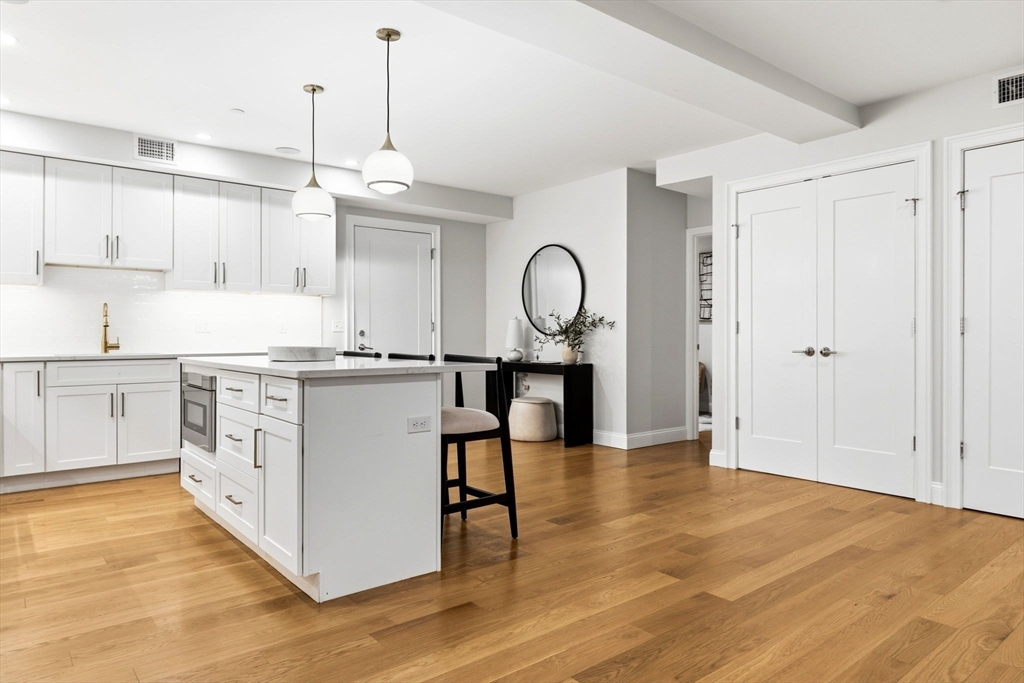 Introducing 40 Westmoreland St- a professionally managed boutique building located in Dorchester’s beloved Adams Village with outdoor space and garage parking! Residence 5 features an open living concept including designer kitchen with GE Café Series appliances, quartz counters and floating island, designated dining area, spacious living room plus bonus office space located off of main living area. King sized primary suite with custom walk in closet and marble shower. Additional features include King sized Guest bedroom, guest bathroom with stone bath and polished fittings, hardwood floors, central air, in unit laundry, and common roofdeck. Ideally situated in the heart of Dorchester, just a block to all of the cafes, restaurants, and bars of Adams St. Additional onsite garage parking available for purchase.