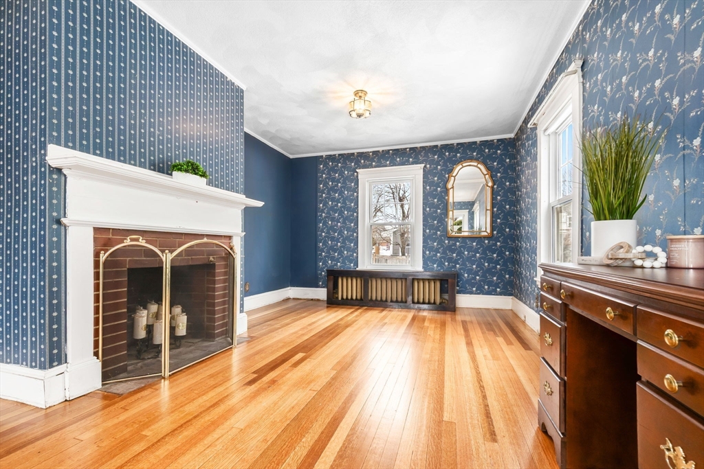 Welcome to this charming American Four Square Colonial, on the market for the first time since 1969! Situated in one of Danvers most desirable neighborhoods, this character-filled home showcases original woodwork and gorgeous hardwood flooring throughout. The first floor features a spacious front-to-back living room with a fireplace (never used) and stunning 12-pane glass French doors, a cozy dining room, full bathroom (tub not pictured), and kitchen. Upstairs offers 4 bedrooms, another full bathroom, and access to a walk-up attic for excellent storage. Major updates include replacement of the main drain, a newer boiler (2022) and hot water tank (2025). Exterior features include a 2-car garage and quaint fully fenced backyard. Bring your vision and restore this classic home to its full potential. Convenient to downtown shops, restaurants, the Rail Trail, schools, parks, and major highways. Schedule your private showing today and be the next to love this home.