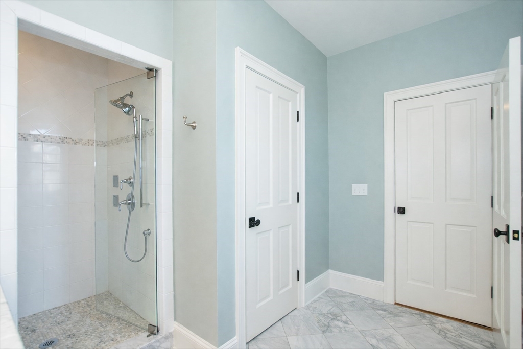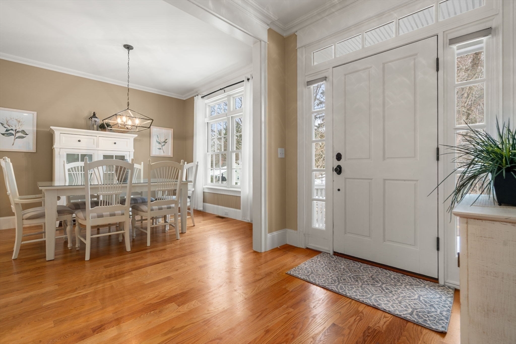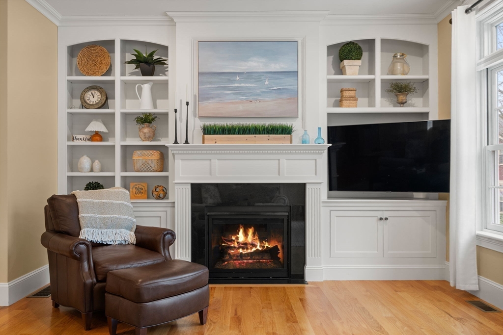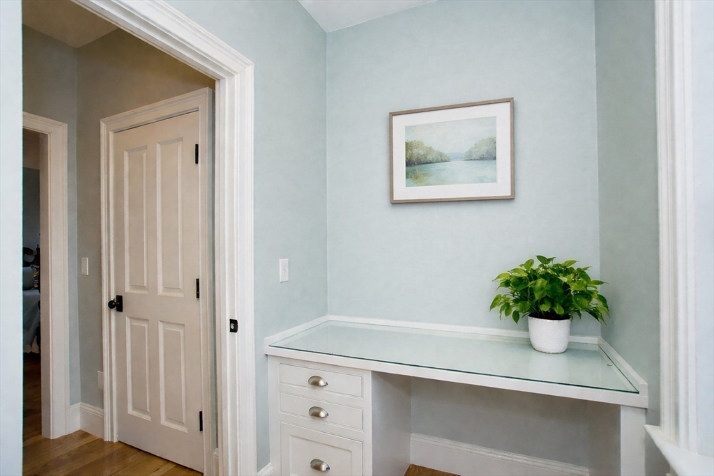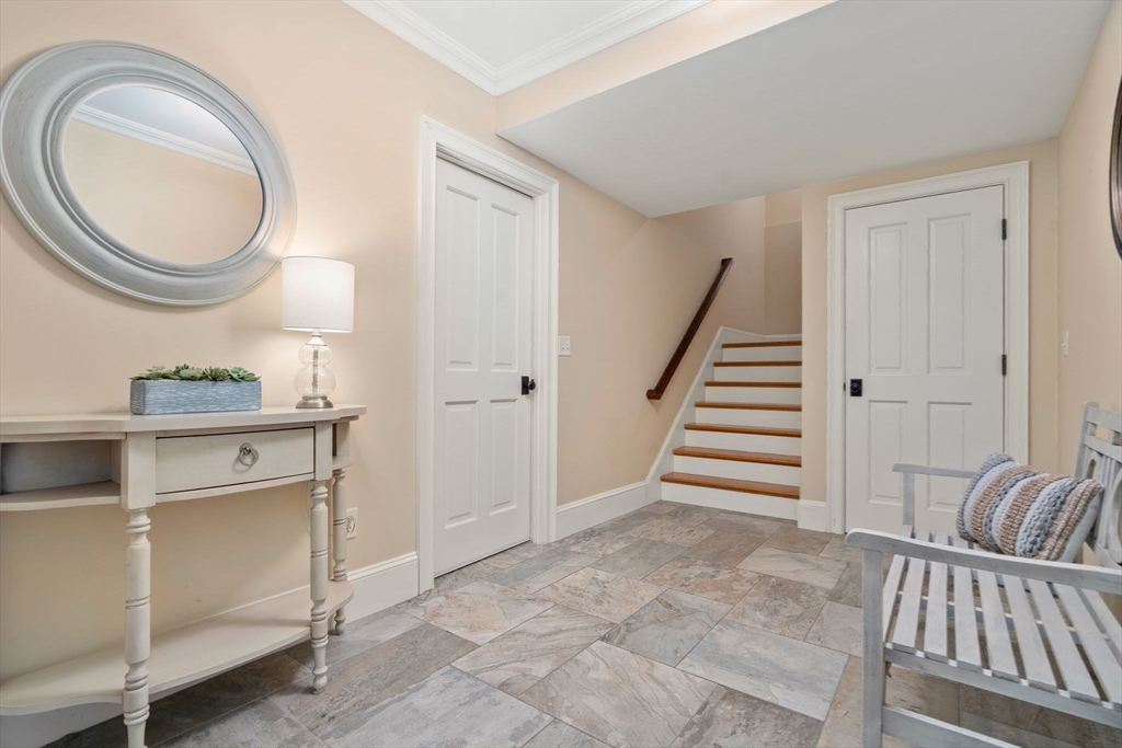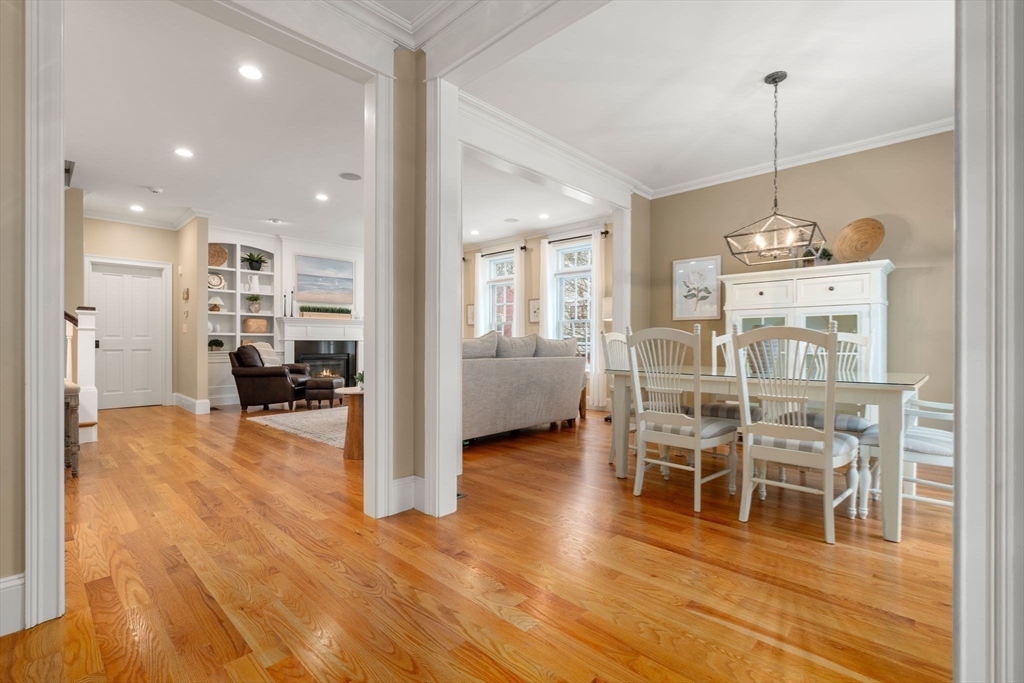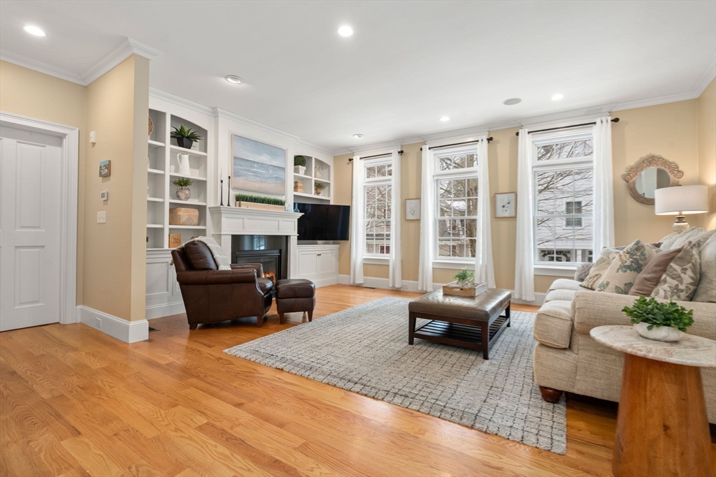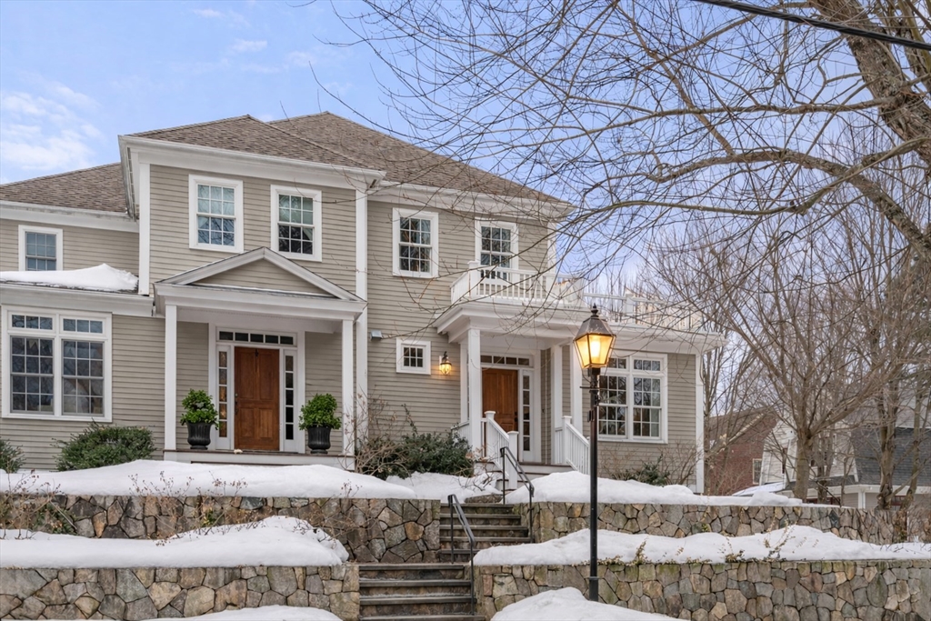 This stunning townhome, a sun-splashed end unit in sought after Olde Village Square boasts southern exposure, beautiful curb appeal and a coveted 1st floor primary suite. Striking stonework and an elegant portico welcome you into a sophisticated residence offering an open floor plan with transom windows, flooding the home with light. The kitchen showcases designer cabinetry, professional grade appliances and peninsula seating with a view to the living and dining room for effortless entertaining. A gas fireplace, exquisite millwork and surround sound add ambiance. The inviting primary suite features a marble bath with spa shower, laundry and private office. Upstairs two generous bedrooms share a full bath and 2nd laundry, while the mudroom leads to storage and a 2-car garage. Enjoy your private gated courtyard, gather on the village green and stroll tree-lined, gaslit streets to fun shops, fabulous restaurants and top-rated schools. OVS, when only the best will do! BY APPOINTMENT ONLY.