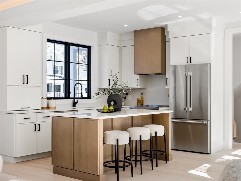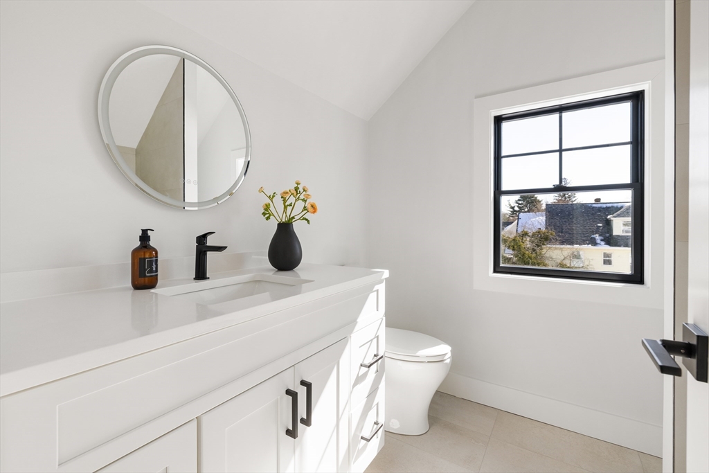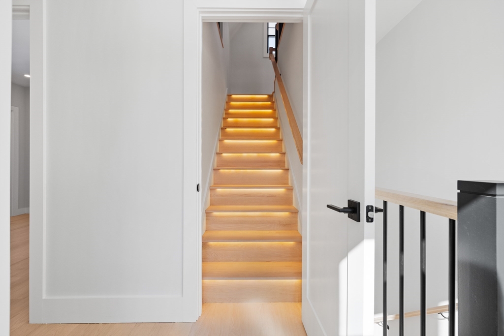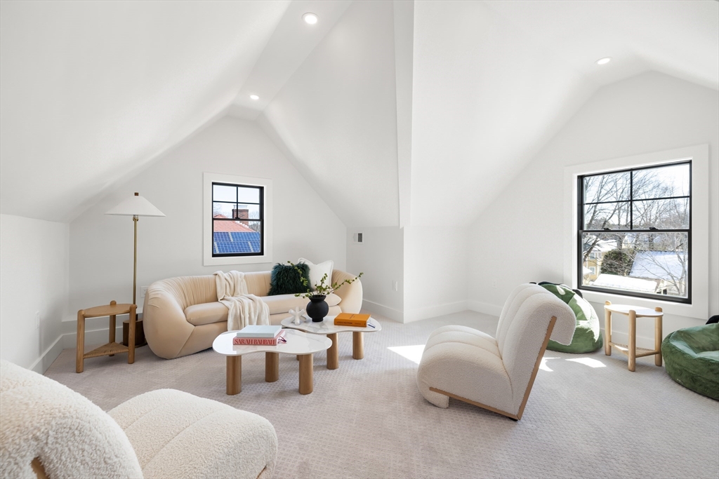 Only one remaining. Newly built townhome on a tree-lined street just steps from Needham Center. This modern single-family alternative offers four finished levels of living and an unbeatable location near Needham High School, Pollard Middle School, shops, restaurants, and the Commuter Rail. The first level features 9 ft ceilings, a fireplace, a thoughtfully designed kitchen that opens to a patio and yard, a powder room, and direct access to the garage. The second level includes a spacious primary suite with a walk-in closet and bath, plus two additional en suite bedrooms and laundry. The finished third floor offers a large flexible space with a full bath—ideal for a bedroom, playroom, office, or family room. The lower level adds even more space, including a recreation room, bedroom, and full bath. With four finished floors and space for everyone to spread out, this home delivers comfort, flexibility, and an exceptional Needham location.