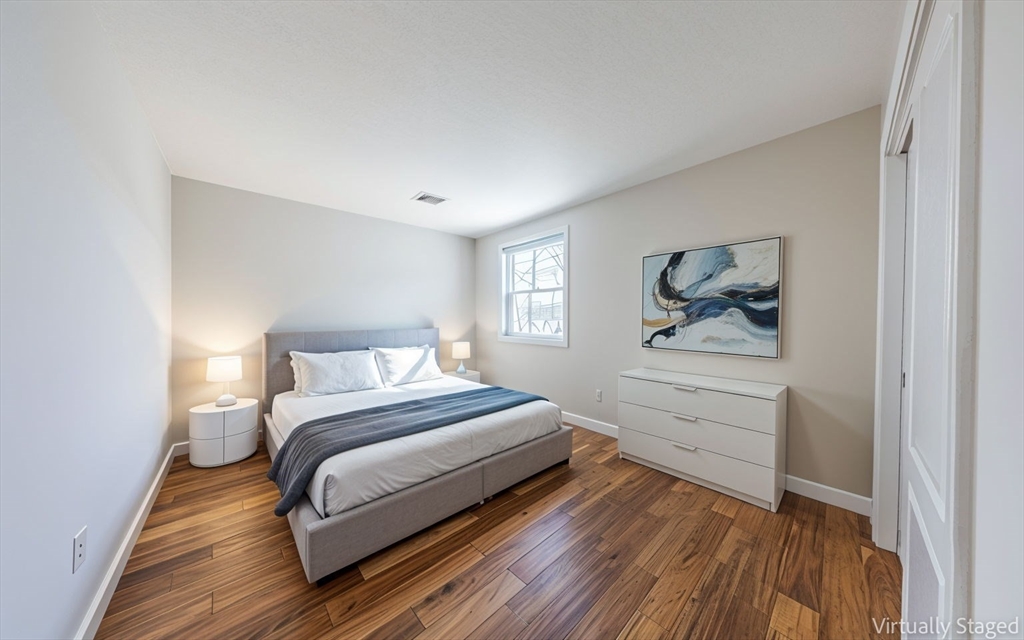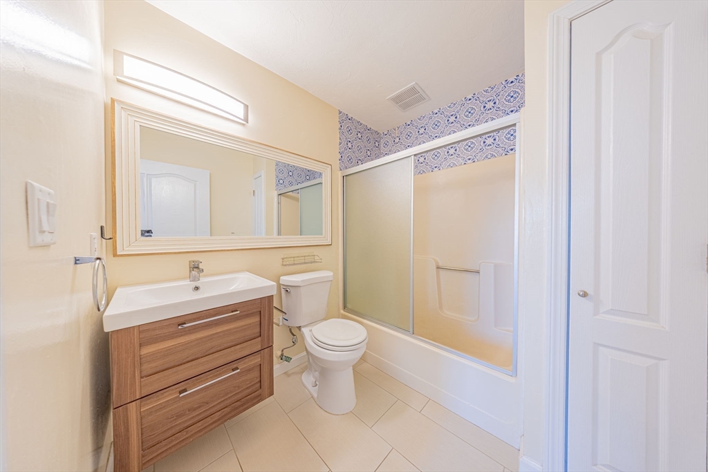 Great opportunity to purchase in this unique townhouse community consisting of 12 units. Condominium living at its best, each condo is designed for individual space. This classic renovated multi-level townhouse has an open floor plan that details an open kitchen, easy for family gatherings. It features stainless steel appliances, quartz countertops, and an oversize island. The kitchen and dining area have direct access to a private outdoors space. The second floor consists of a master bedroom with a walk-in closet and Two additional bedrooms with generous closet space, plus a full bathroom. The finished basement has an additional full bathroom, laundry room and additional space to be used as you feel suitable. Conveniently located to the commuter rail just 4 stops from South Station and within walking distance from Roslindale Village, Post office, various supermarkets, local restaurants and gas station.