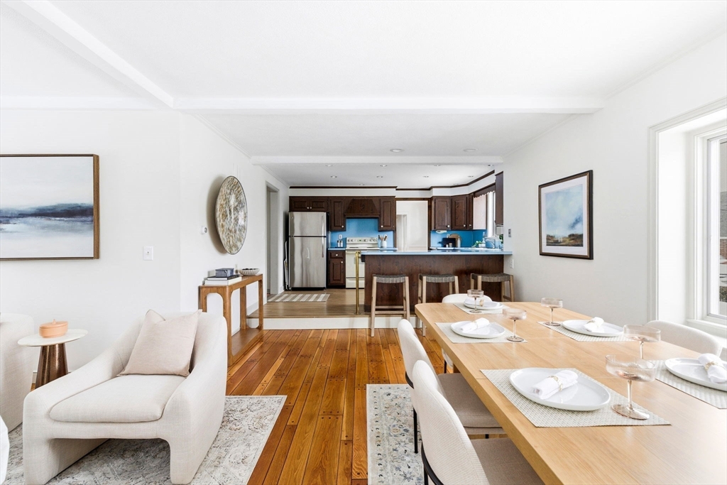 Set on a sunny corner lot just two blocks from Lake Quannapowitt, this two-family home offers space, flexibility, and future potential. The inviting yard offers space to relax, garden, and enjoy the seasons. The layout supports owner occupancy, rental income, or multigenerational living, with potential to expand or convert to a single family, subject to buyer due diligence. Unit 1 features an expansive family and dining area with an open concept kitchen and fireplace, a formal sitting room, sun porch, and three bedrooms, creating a layout suited for everyday living and gathering. Unit 2 offers two bedrooms including a well proportioned primary and a versatile second bedroom, plus separate living and dining areas for comfortable living. Separate utilities add convenience for owners and tenants. A walk up attic and bonus basement space offer storage and future possibilities for expansion, workspace, or creative use.