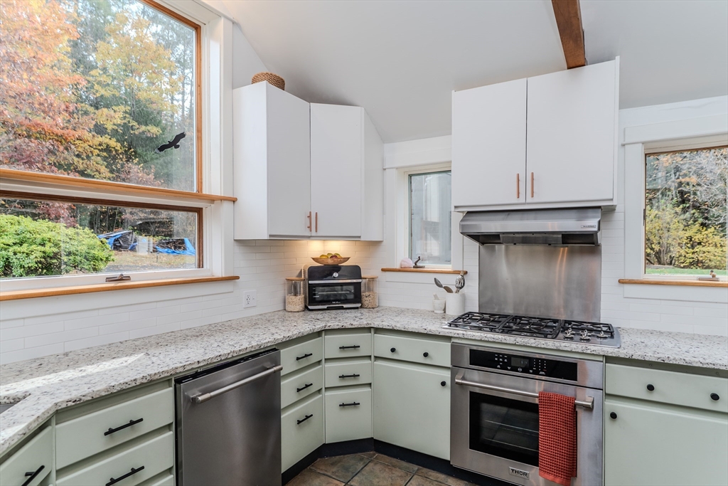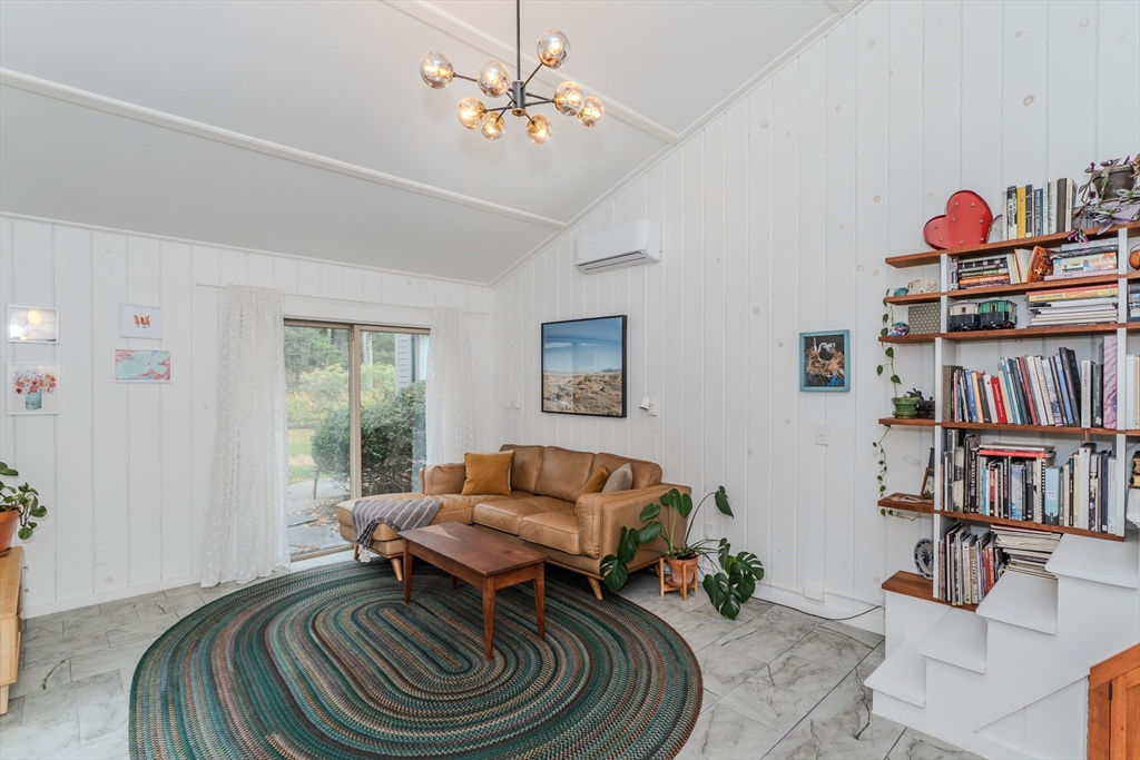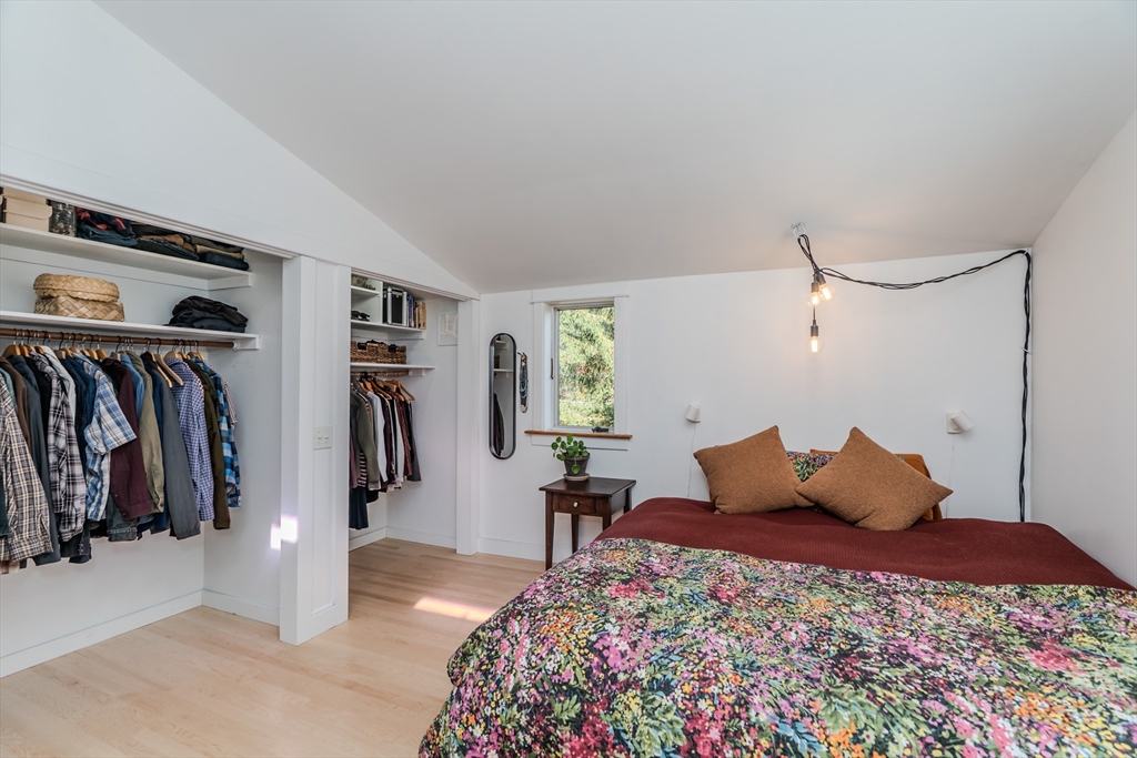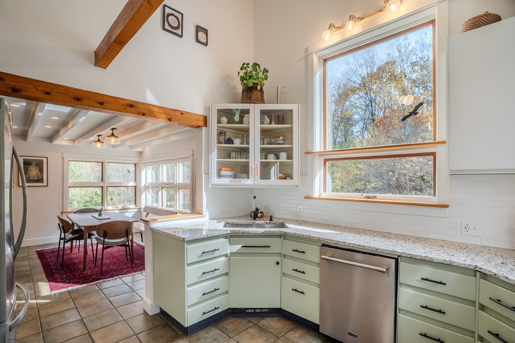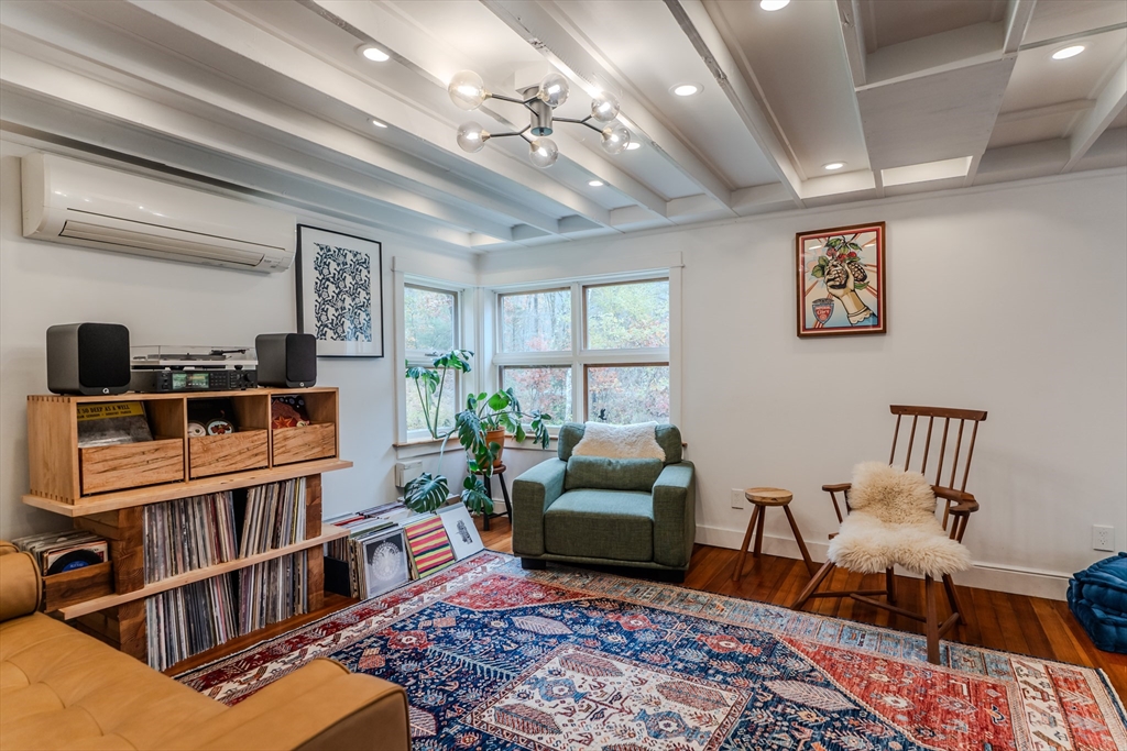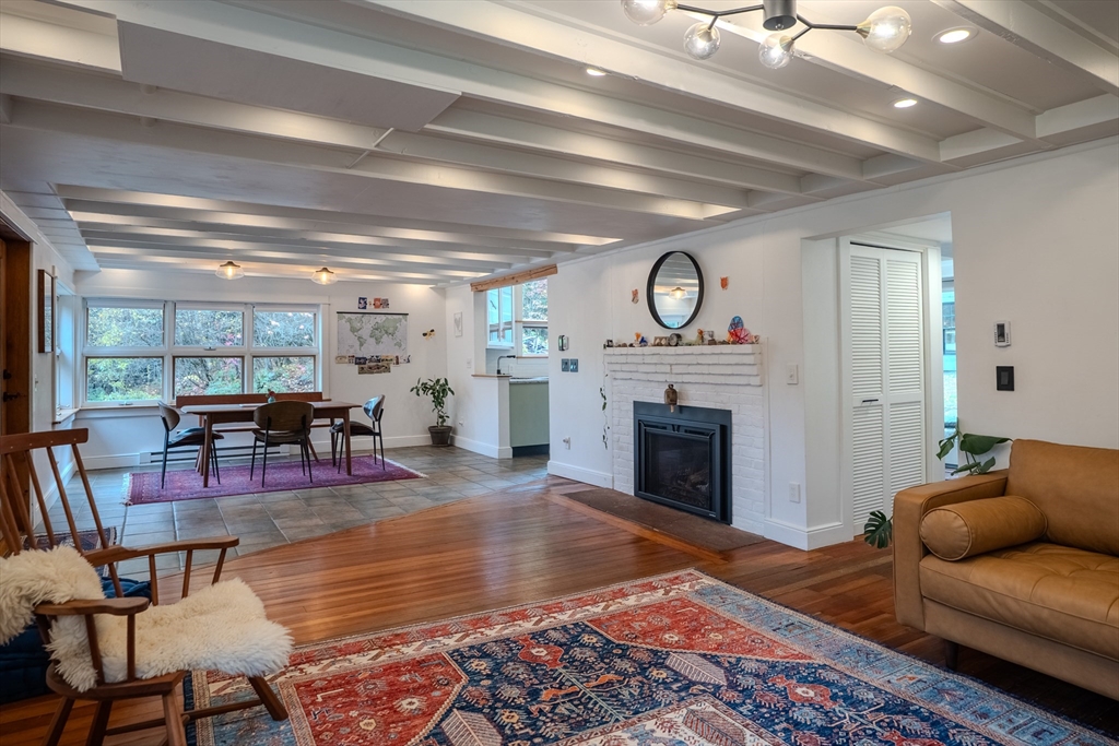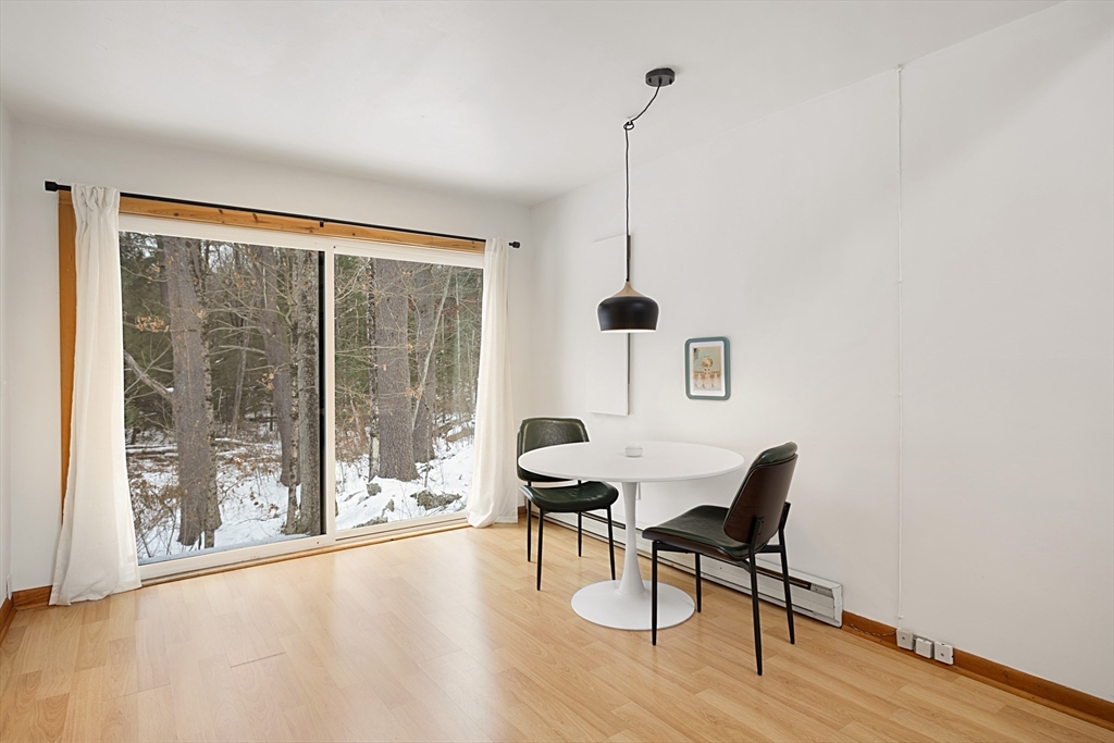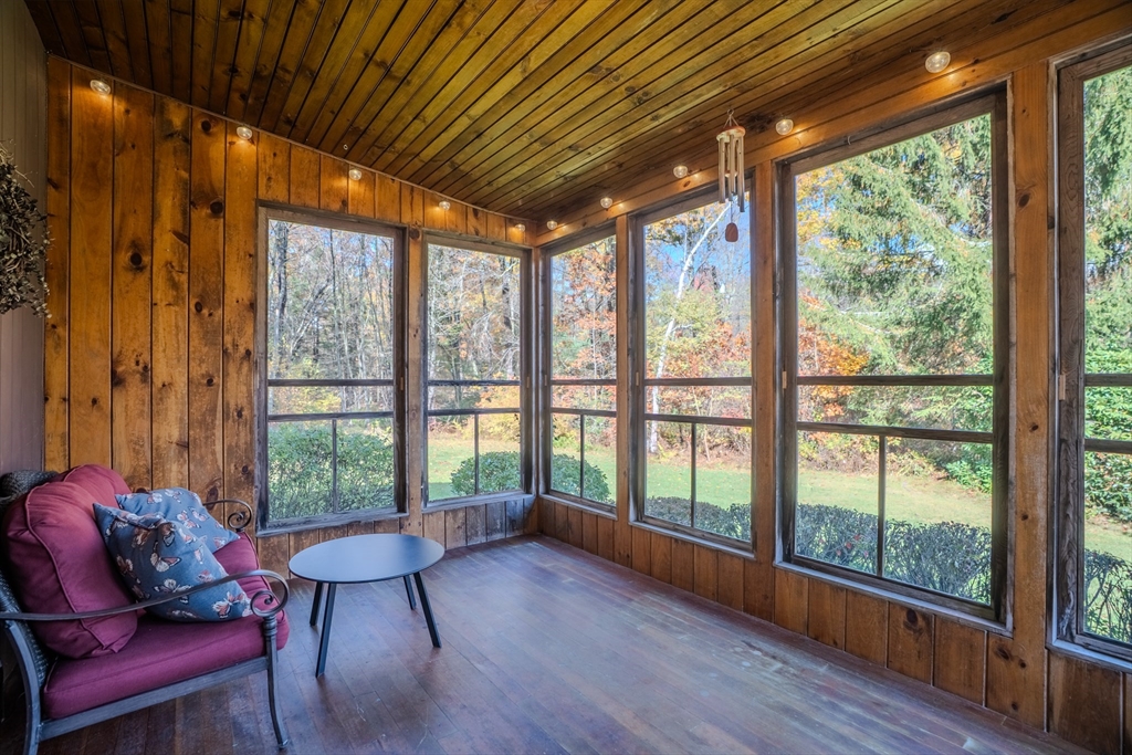 Nestled on a serene 4.9-acre lot, this contemporary home offers a private retreat with unique flexibility. Spanning 6 RMS, the main residence features 3 BRs & 1.5 baths, anchored by a cook’s kitchen with a gas cooktop and granite counters. The spacious living & dining area boasts a cozy fireplace and the den offers extra space for gathering or unwinding. Take in scenes of nature from every window, the screened porch, or the Goshen stone patio. The property also includes a charming ~800 sq ft guesthouse with an open floor plan, featuring 5 RMs, 2 BRs, & 1 bath—perfect for visitors or as a rental. Additional highlights include a heated workshop w/ office, storage shed, & 2 fenced garden areas, providing ample room for hobbies & projects. Just down the road are maintained trails, the Peace Pagoda, and Leverett Pond. Conveniently located just minutes from major routes, schools, & local venues, this home combines modern living with tranquility in a picturesque setting.