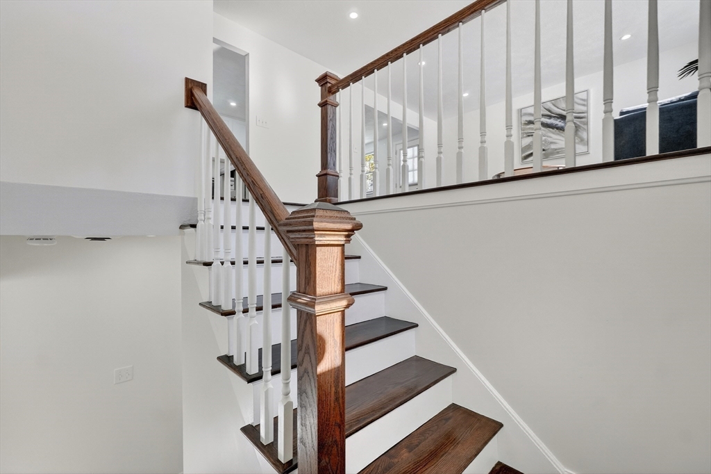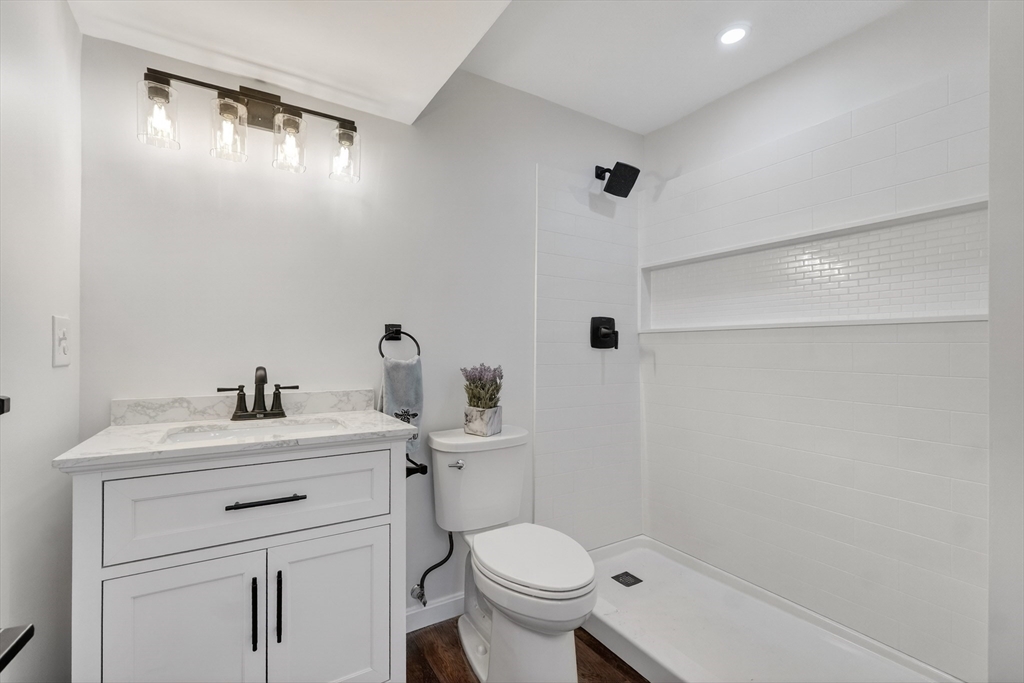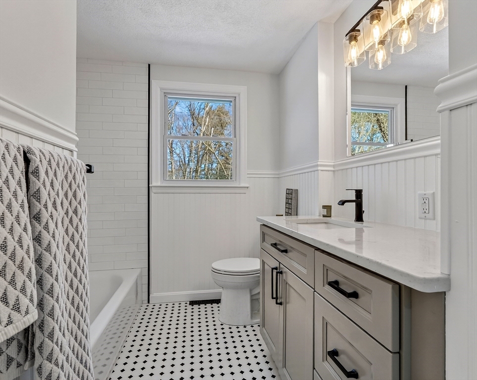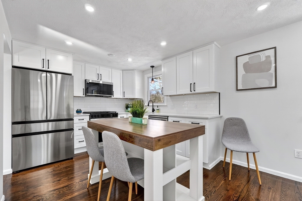 Welcome home! With features and finishes that inspire, this home has been completely renovated so you can move in and enjoy. We think you'll love the completely finished lower level that adds a 4th bedroom, full bath with shower, front to back family room with 1/2 bath (with the cutest sink you'll ever see) and mudroom/laundry area that walks out to private backyard with a stone paver walkway. New white shaker kitchen with stainless appliances, quartz counters, center island, dining area and a sprawling composite deck that sits off the kitchen makes it the perfect outdoor area to entertain when the snow melts! Hardwood throughout the main level. Gorgeous, sparkling tile full bath. It's hard to imagine that it will ever be warm after the winter we've had but with spring right around the corner, you'll have a large outdoor space to build a backyard oasis! Board and batten vinyl siding on the front of house, stone paver walkway to front door, granite steps, and sits on a quiet street!