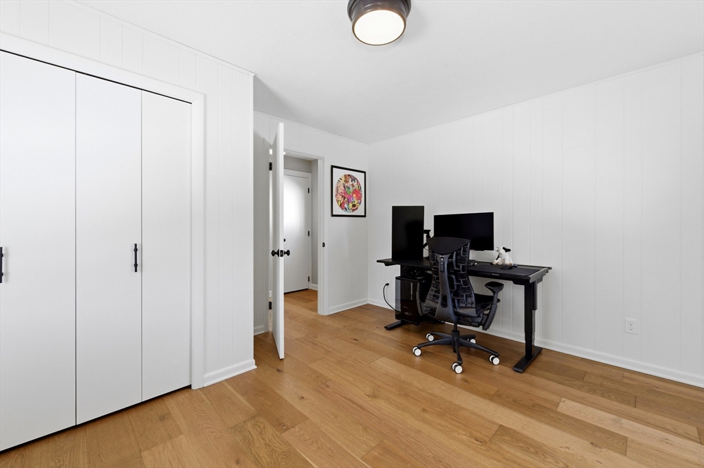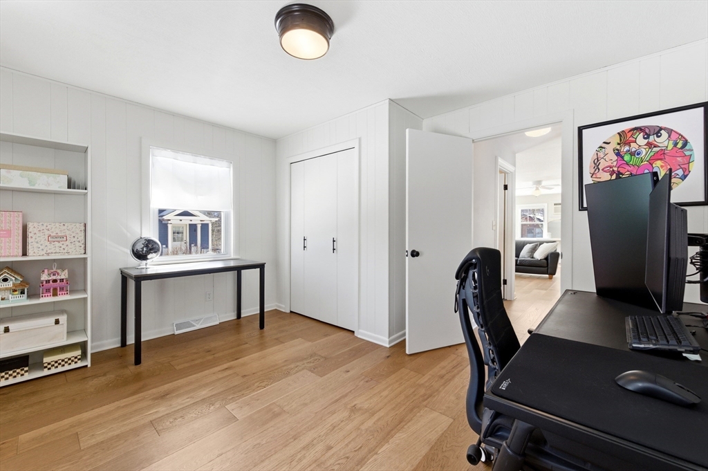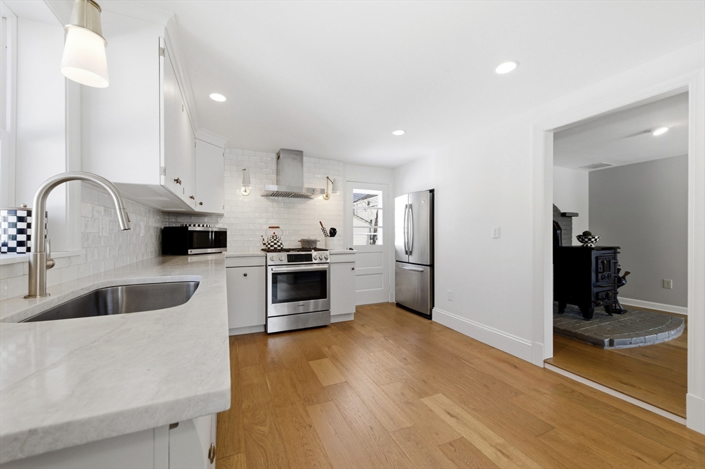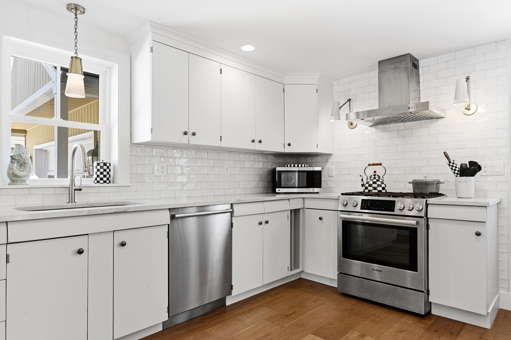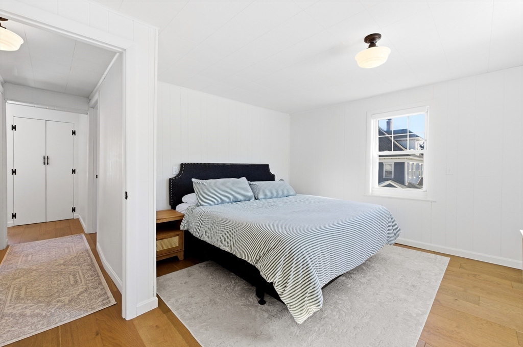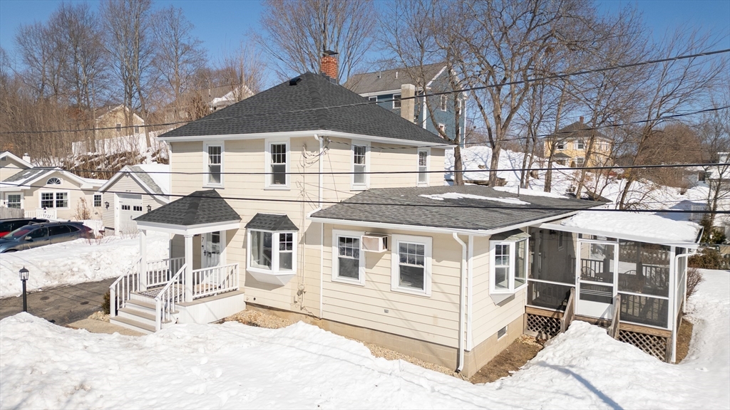 Tucked on a quiet cul-de-sac, this recently updated 3-bedroom 2-bath Foursquare style Colonial blends classic charm with modern flair & conveniences. Beautiful large rooms offering tall ceilings, tons of natural light invite you in to enjoy a nicely appointed Kitchen with ss appliances and impressive Taj Mahal quartzite counter tops. The main level features generous living & dining spaces that flow effortlessly together boasting wide-plank European white oak floors w/ a matt finish. French doors lead to a screened in porch—perfect for relaxing or entertaining. A first-floor bedroom and full bath provide flexible living options. 2nd Floor offers two bedrooms, a full bath, a dedicated laundry room, & walk-up attic for additional storage. Most recent updates include new furnace, new gutters & concrete patio. A one-car garage & private yard with terraced garden beds complete this beautiful home. Minutes to downtown Amesbury & major highways offering both convenience & neighborhood appeal.