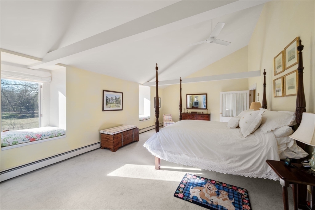 Incredible opportunity to live in a late 19th century Carriage House tucked back from the road on beautiful grounds along historic Paine Avenue in Prides Crossing. Surrounded by the area’s storied estates, this distinctive 5-bedroom, 3.5-bath home blends timeless character with comfortable modern living. The light-filled first level features soaring ceilings, an open layout, and inviting living and dining spaces with access to the expansive yard. The eat-in kitchen offers modern amenities, a sitting area, and French doors to the outdoors. The second level includes four bedrooms with serene views, including a primary suite. A private one-bedroom in-law or au pair apartment with separate entrance retains classic Carriage House charm, including antique wood and original doors, along with a living room, kitchen, and bath. Landscaped grounds, stone patio, open lawn, deeded West Beach access, and close proximity to the villages of Prides Crossing and Beverly Farms complete this special home.