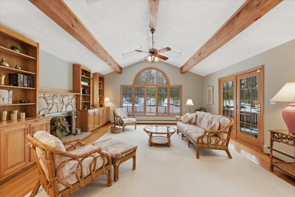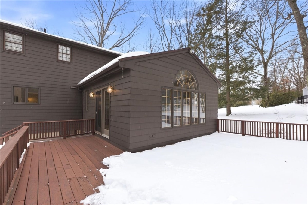 Set gracefully on 2.02 private acres this immaculate 4-bed, 2.5 bath home tucked at the end of a cul-de-sac offers a rare combination of privacy and coveted neighborhood living in the Martha Jones School District. The interior showcases timeless design elements, including hardwood floors, custom built-ins, and the inviting warmth and architectural character of two wood-burning fireplaces. The layout is well suited for daily life and effortless entertaining, featuring an expansive eat-in kitch, formal living and dining rooms, dedicated office space, and an elegant light filled family room. Spacious primary suite boasts ensuite and WIC. Additional bdrs+ full bath provide flexibility for family and guests. Thoughtful design throughout is highlighted by a dedicated home office, cedar closet, central vac, and abundant storage. Outdoor living is equally impressive. Wrap-around deck and stone patio overlook meticulous landscape, while a tennis court elevates the lifestyle experience!