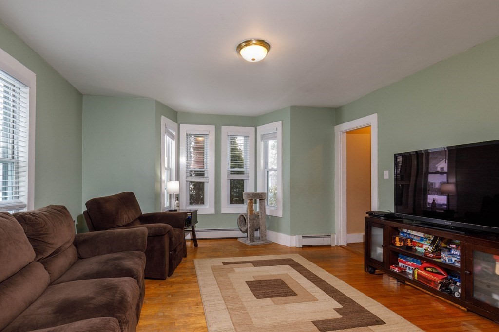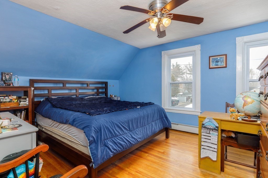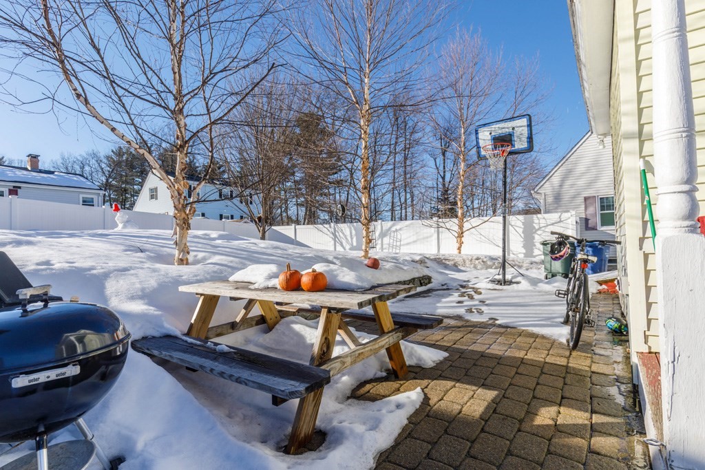 Classic New England home located in West Leominster between Abbott Ave and Merriam Ave offering hardwood floors, tall ceilings, an updated kitchen, and a backyard patio & shed with convenient access to Route 2 and major commuter routes. A farmer’s porch leads into an entry hall opening to a spacious living room and formal dining room featuring hardwood floors and tall ceilings. The updated kitchen offers abundant cabinet space, generous counter space, and a gas stove. A rear hall provides access to the backyard and a convenient first floor bathroom. The backyard offers great outdoor space with a paver patio, storage shed, and partially fenced yard. The second floor features three bedrooms with hardwood floors, large closets, and a full bathroom. A clean, painted basement with bright lighting offers excellent usable space for storage, workshop, or recreation area. French drain system with sump pump installed along with organized mechanicals, including a Buderus heating system.