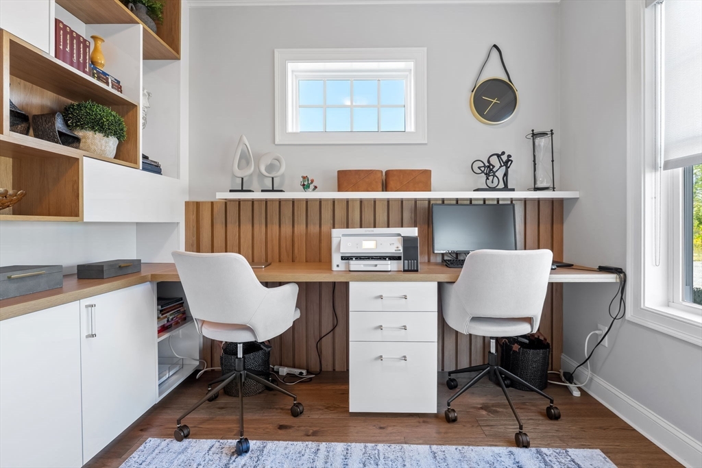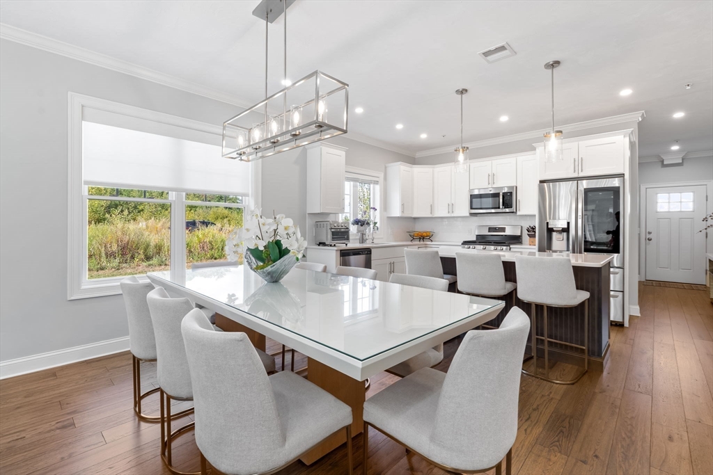 Built in 2021, only 5 years old-- this new stunning two-story Clinton condominium blends modern style with timeless details — Offering 3 bedrooms, 2.5 baths, and 2,139 sq. ft. of living space, the open floor plan features hardwood throughout, crown molding, and thoughtful upgrades. The inviting living room boasts a fireplace and built-ins, while the chef’s kitchen impresses with shaker cabinets, stone counters, tile backsplash, oversized island, and bar seating. The primary suite includes a walk-in closet, double vanity, and tiled walk-in shower. Additional highlights include a second full bath, epoxy-coated garage floors, custom blinds, and a spacious two-car garage. With its refined finishes and functional design, this home offers comfort, convenience, and elegance in one. Come visit today!
