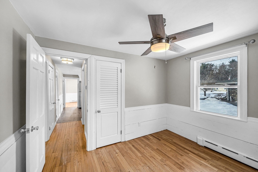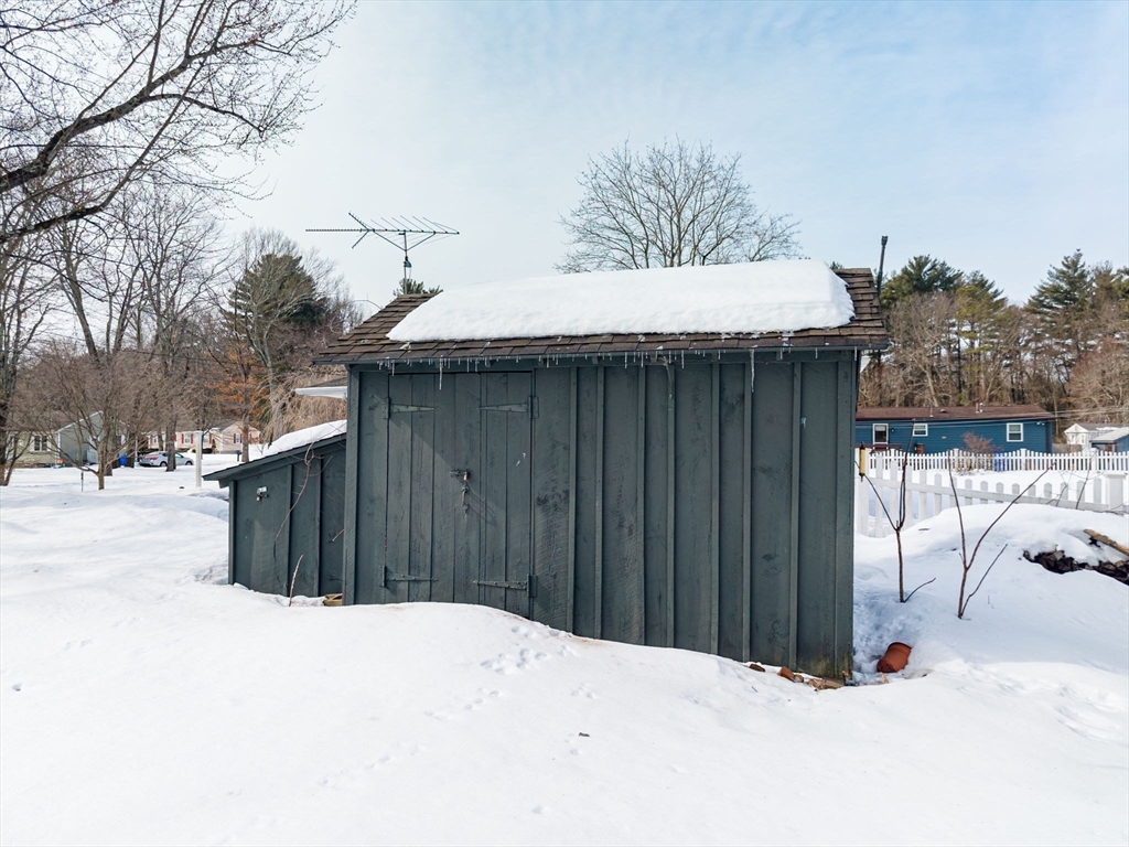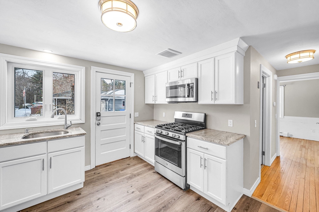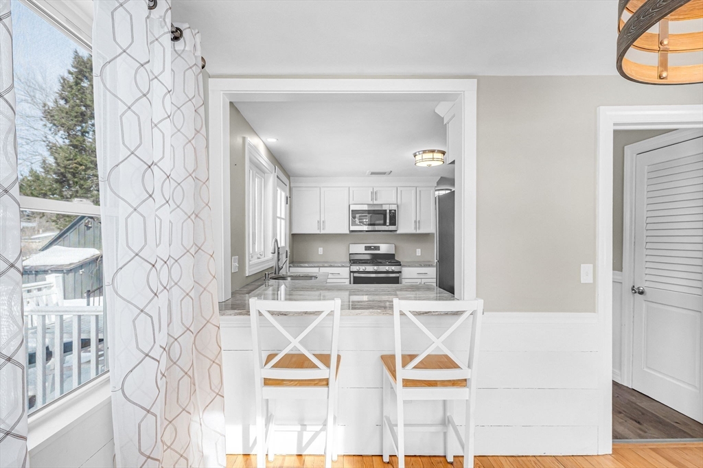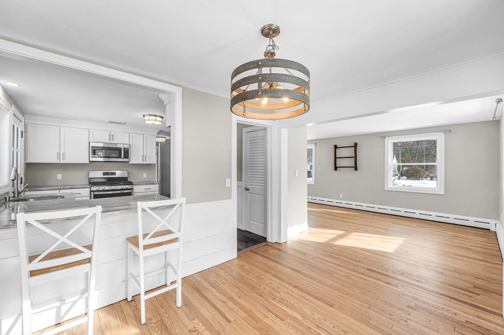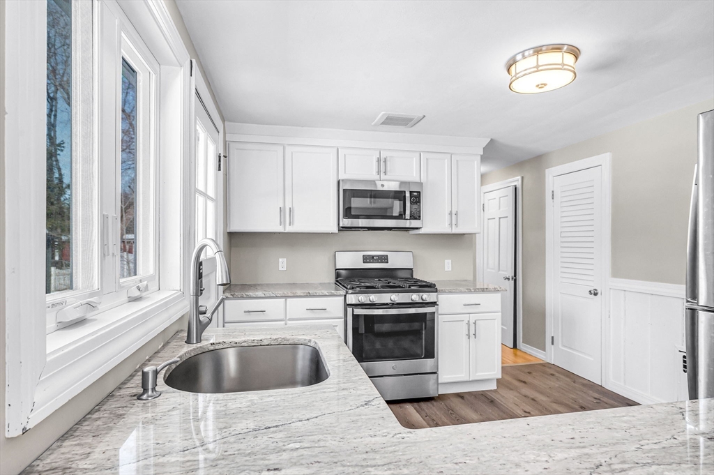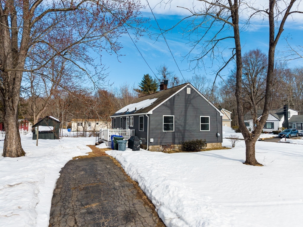 Beautiful move-in ready ranch located on a quiet dead-end street in the desirable Sixteen Acres neighborhood. This well-maintained home features hardwood floors, a bright open living and dining area with fireplace, and an updated kitchen with modern cabinetry, granite countertops, and stainless steel appliances. Two spacious bedrooms and a beautifully updated full bathroom complete the main level. The partially finished basement provides additional flexible space perfect for a game room, home office, or gym along with laundry and storage. Situated on a corner lot with a paved driveway, deck, and storage shed, the property offers both comfort and convenience. Updated mechanicals and major improvements including roof, siding, windows, heating system, and appliances make this home a great option for buyers looking for quality and peace of mind.