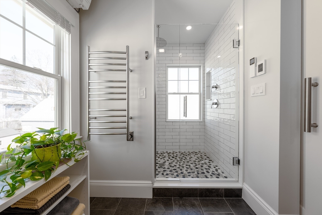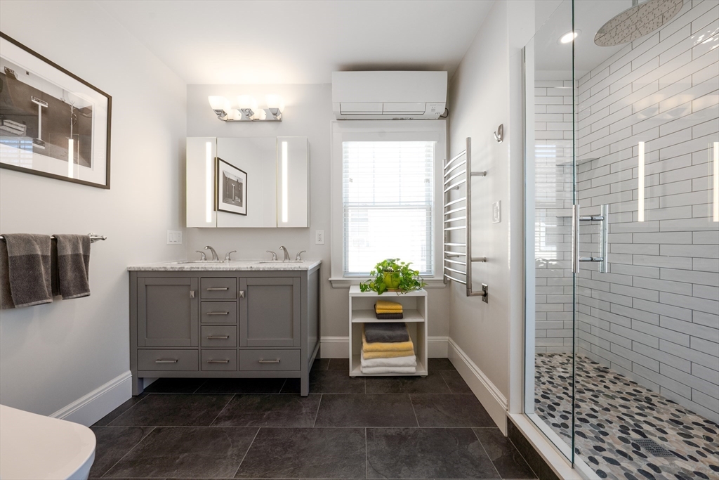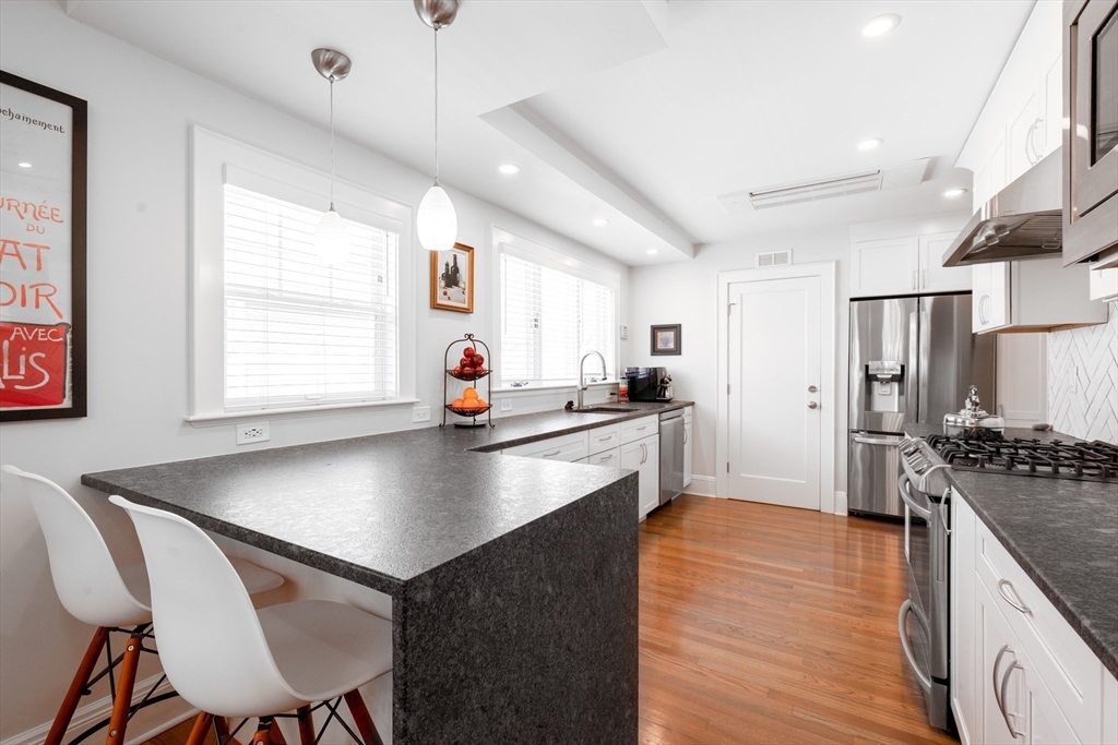 Elegant and smart bi-level condo - a combination of classic architectural detail with advanced and modern amenities. Tastefully renovated in 2020, including new roof, foam insulation, windows, painting, plumbing, electrical, and 2 dormers. This sophisticated 3 bedroom, 2.5 bath unit features hardwood floors throughout, a kitchen w/ ss appliances and leathered granite countertops, large sunroom/office, & dedicated laundry room. Master suite w/ large closet area, spacious bathroom w/heated floors, and walk-in shower. Second full bath w/ soaking tub, and much more. Boasting 199K BTU on-demand water heater, and solar panels (owned) producing 11,000+ kWh/year. WiFi enabled HVAC heat pumps with 8 mini-splits. Energy consumption by HVAC is fully offset by solar production which practically eliminates heating and cooling costs. Located just minutes from local schools, Victory Field and Arsenal Yards, this stylish home also includes a garage & a never out-of-date white picket fence.
