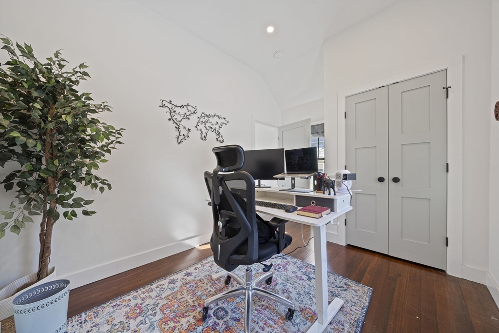Gorgeous townhome located in the premier Bellevue Hill neighborhood. This beautifully maintained home completely renovated in 2023, features a bright open floor plan with spacious living areas. The kitchen with its entertaining size island and custom cabinets flows seamlessly into the dining and family rm area. Just off the dining space is a half bath for guests. The fam rm is a standout space, featuring a stunning custom brick accent wall recently installed, adding warmth, character and a beautiful focal point to the room. The primary bedroom offers a private retreat, complete with high ceilings, a custom walk-in closet and a well-appointed bathroom. The 2nd bedroom is generously sized offering comfortable space with its custom built-in Murphy bed, perfect for family, guests or a home office. Enjoy low maintenance living, centrally located in the heart of West Roxbury. A commuter's delight with short walk to the commuter rail, shopping and parks plus easy access all major highways