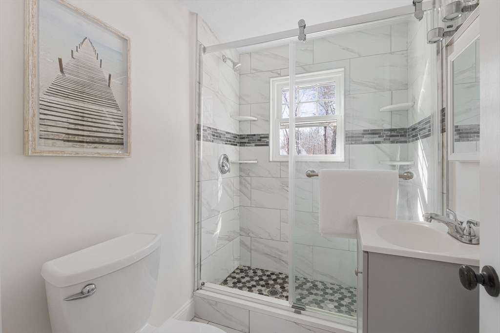 Designed for flexibility and connection, this expanded Colonial offers rare first floor in law suite potential with private driveway access, separate living area and kitchen space. Making it ideal for extended stays, multigenerational living, or a private work from home setup. Sun-filled living and dining rooms create an easy flow for gatherings, while additional bonus spaces off the living room, and in the basement offer room to spread out. Sliders lead to an oversized deck overlooking a beautifully landscaped .69 acre yard with stone walls and open volleyball recreation space, perfect for summer evenings, gardening, or outdoor games. Thoughtful updates throughout enhance comfort and peace of mind, including roof, windows, doors, siding and hardwood floors. Two car garage, ample parking, and convenient access to major routes and the MBTA complete the offering. A unique opportunity to own a home that adapts as life evolves.