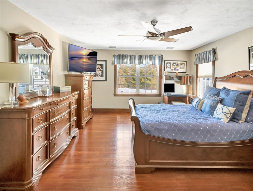Set at the end of the cul-de-sac in sought after Tanglewood Estates with over 2 miles of sidewalks & surrounded by beautiful woods with a great back yard & 3-car garage! Plenty of space including an elevator for all 3 levels including the 2nd floor which has 2 wonderful primary suites with full bathrooms & walk-in closets. Expansive family room serves as a grand setting for relaxation & social gatherings featuring a stately stone fireplace for warmth & ambiance and open to the beautiful kitchen including natural gas cooking, large center island & pantry. Soaring ceilings enhance the sense of openness & architectural grandeur within this inviting space. Relax on the oversized deck overlooking the professionally landscaped grounds with irrigation system. Central air, lots of gleaming hardwood floors, recessed lights, efficient natural gas heat & hot water. Bonus:1 year home warranty included for buyer!