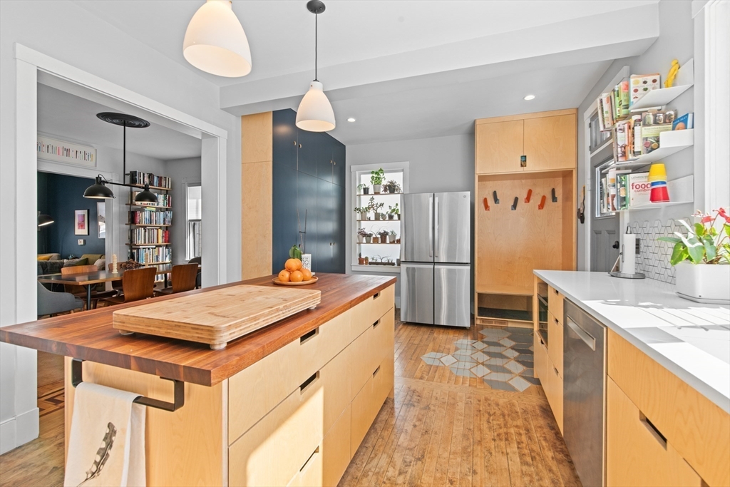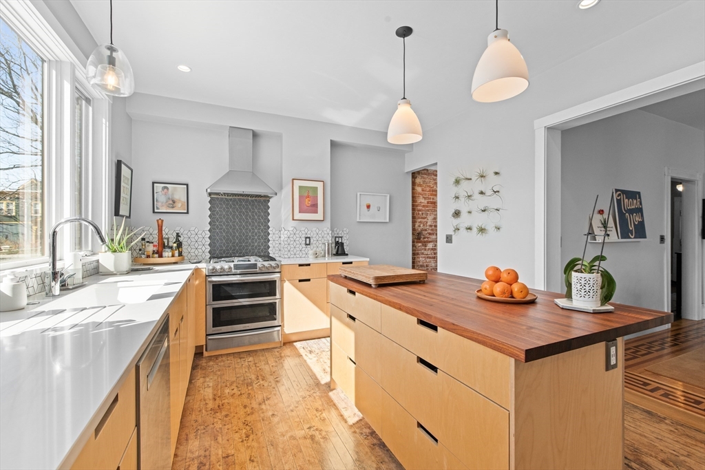 Welcome to 10 Sanborn Ave, a beautifully redesigned residence in the heart of vibrant Union Sq, Somerville on a tranquil street . A true piece of living art, this distinctive home blends timeless craftsmanship with thoughtful modern design. Offering over 1,700 square feet, the home features 3 bedrooms, 1.5 baths, off-street parking, & private outdoor space. A meticulous 2018 renovation modernized systems including HVAC, insulation, plumbing, electrical, solar, kitchen, & baths while preserving original architectural details such as plaster moldings, a graceful newel post, & inlaid hardwood floors. Soaring ceilings & abundant natural light create an airy sense of volume. The spacious primary bedroom includes a walk-in closet, while a full walk-out basement with high ceilings offers future expansion potential. Just moments from Union Square’s celebrated dining, cafés, Bow Market, & the Green Line, his home offers a refined blend of historic charm, modern comfort & dynamic urban living