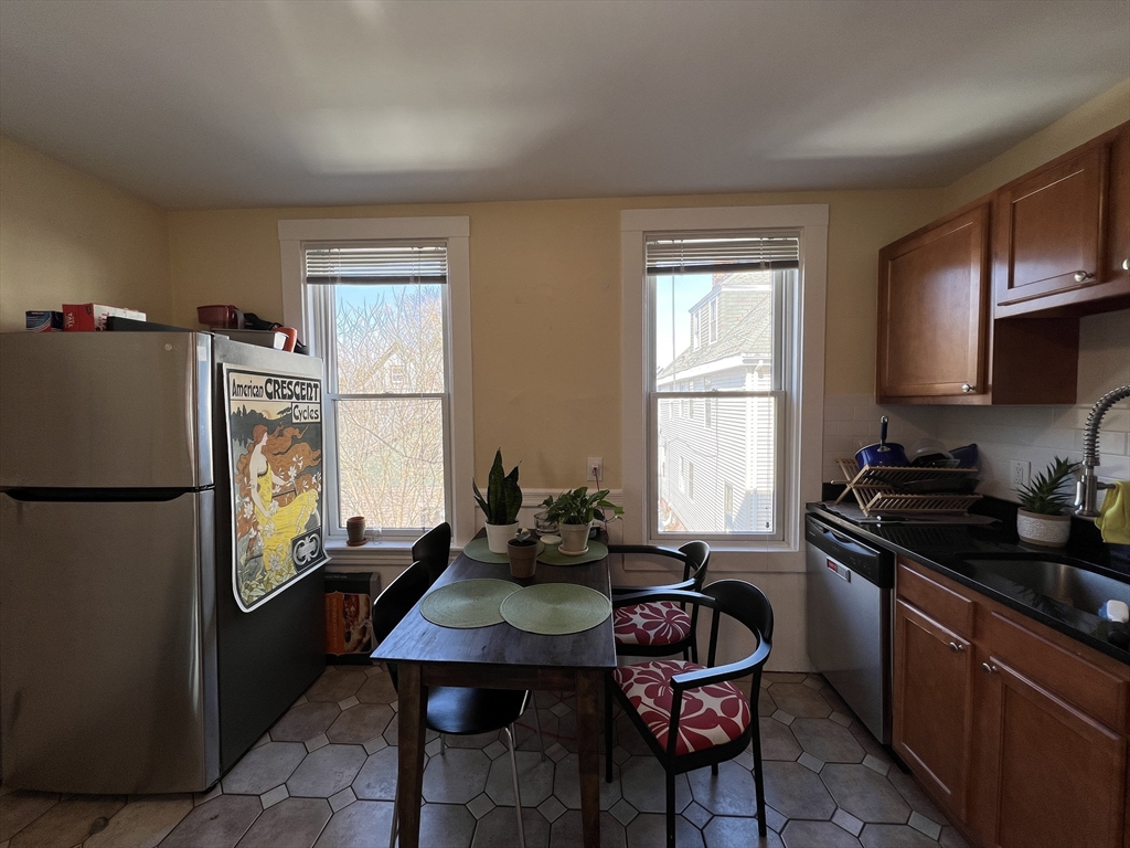 Porter/Davis Square. Closest train = Porter/Davis Square. 4 bed/2.5 bath (third floor). Hardwood floors. Updated & modern kitchen. Tiled bathrooms. Central heat & A/C. Free use of laundry machines in-unit. Private rear deck. Off-street parking spaces available for rent.