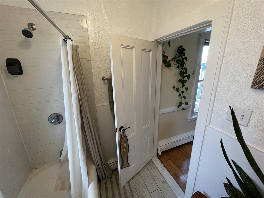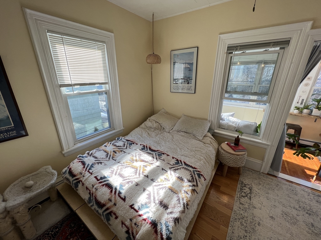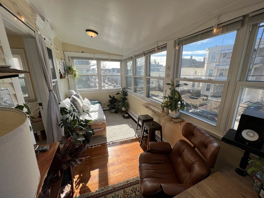 Davis Square. Closest train = Davis Square). 1 bed/1 bath (second floor). Updated kitchen (granite countertops, ss appliances, nice cabinets, etc.). Updated tiled bathroom. Bright extra sunroom. Hardwood floors. Coin-op laundry in the basement. Street parking.