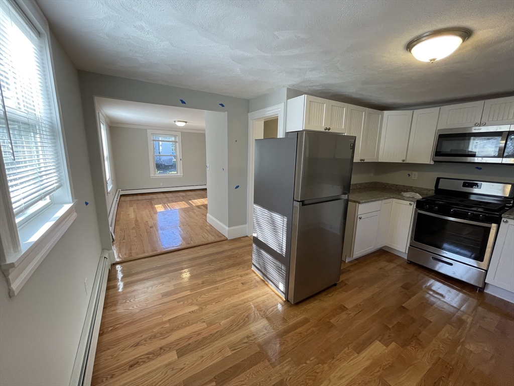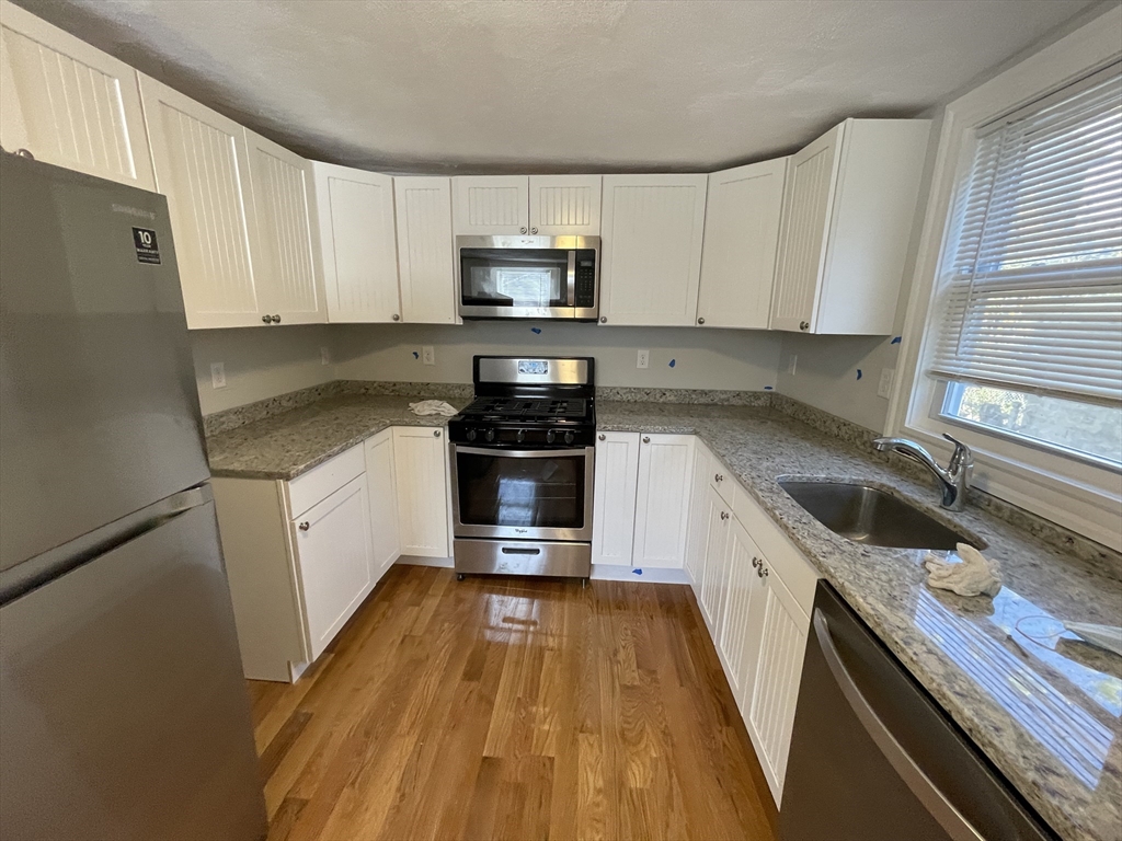 Davis Square. Closest train = Davis/Porter Square (Red Line). 3 bed/1 bath (first and second floor, right side unit). Multi-level unit! Separate living room. Updated eat-in-kitchen (granite countertops, stainless-steel appliances, modern cabinets). In-unit laundry. Street parking with City permit. Yard. Off-street parking spaces for rent.
