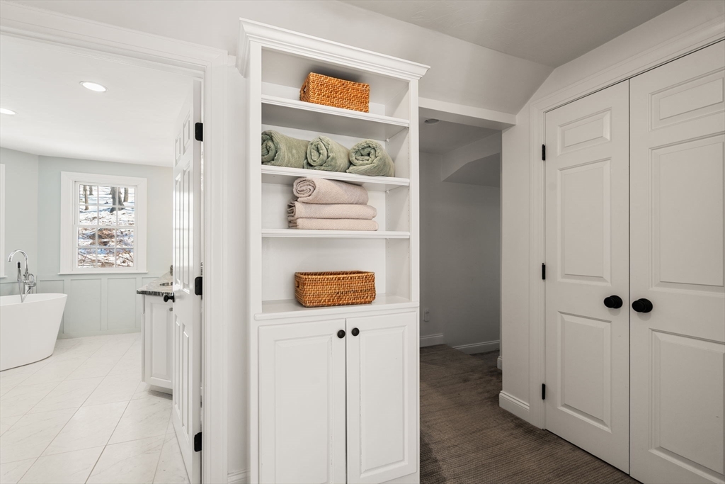This spectacular 5-bedroom Colonial is set back on a beautifully landscaped .72-acre lot in Cliff Estates. Complete gut renovation in 2023 opened up Kit, DR & breakfast rm to create stunning open kit, complete w/oversized 12x5 Calacatta Vagli marble island plus Wolf range, Subzero refrigerator, lrg pantry & coffee bar, & spacious dining area. Oversized LR w/fireplace & incredible natural light. FR w/ built-ins & sunroom/office w/serene yard views complete the 1st floor. Luxurious master suite w/ lrg walkin closet/dressing area & fully renovated bathroom, featuring walk-in shower & spa-like tub. 4 additional BRs of similar size on the 2nd flr, including separate guest ste w/priv staircase & full bath. LL playroom + exercise area & full bath. Private patio & thoughtfully-designed landscaping filled w/native perennials, adding vibrant color to the property in 3 seasons. Perfect combination of excellent layout, short distance to Bates Elementary & one of Wellesley's favorite neighborhoods.