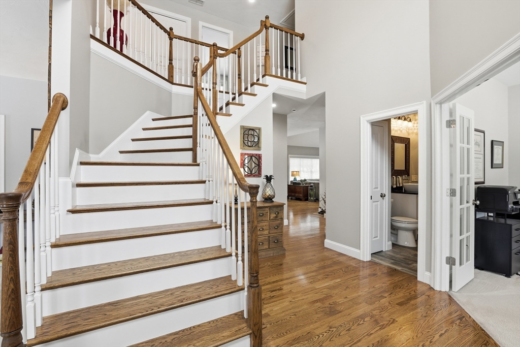 Location, Location, Location! This lovingly maintained, 10 year young, contemporary colonial w/ Farmers porch located in the McIntosh Lane / Apple D'Or neighborhood at the end of a cul-de-sac near the Acton/Westford line. The open eat-in Kitchen has it all, gas cooktop with pot filler, double wall oven, cast iron apron front farmers sink, oversized island, surround sound, recessed lighting & slider to the deck and paver patio overlooking a beautiful backyard! 1st floor study and front to back Living RM & Dining RM complete the level. Utilize one of the 2 staircases to access the 2nd flr & you'll find the primary suite w/ walk-in closet & bath w/tiled shower/double vanity/jetted tub. There are 3 more generous sized bdrms on the 2nd floor, laundry area & full bath w/double vanity. Plenty of areas in this spacious home to fit your office needs. Head to the lower level for the best surprise of all! full bath and storage. It's the little details & care that make this home a true gem!