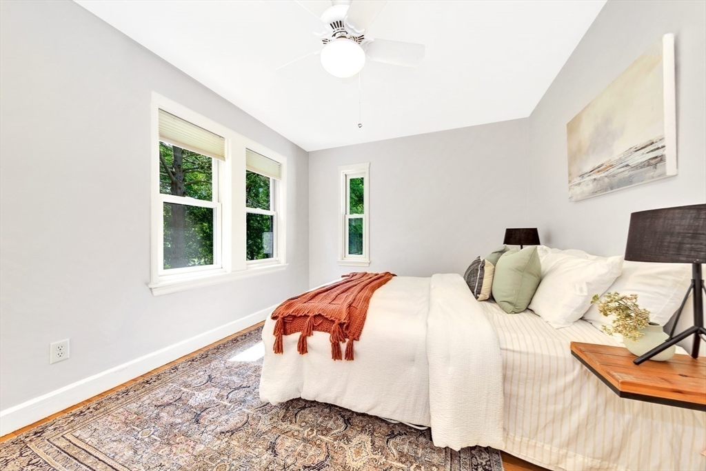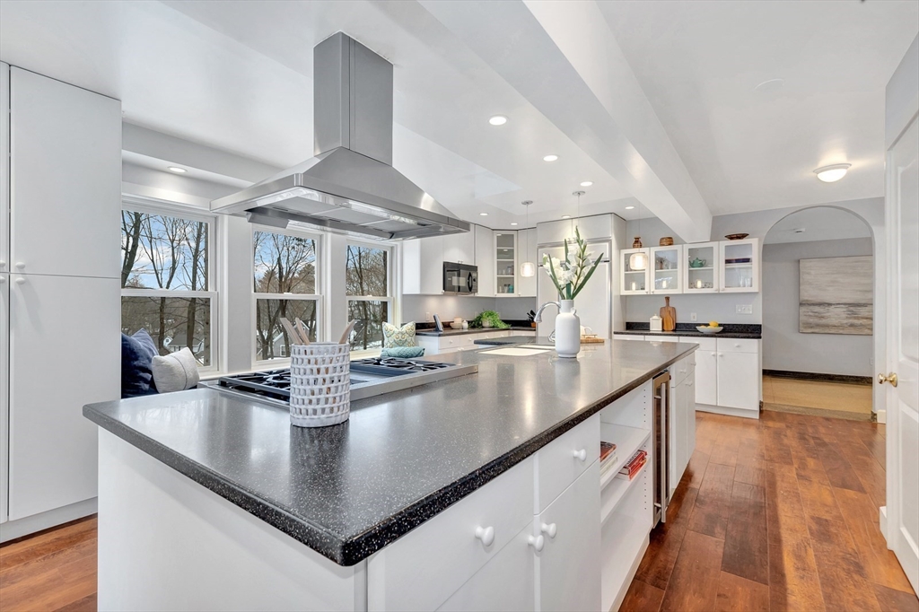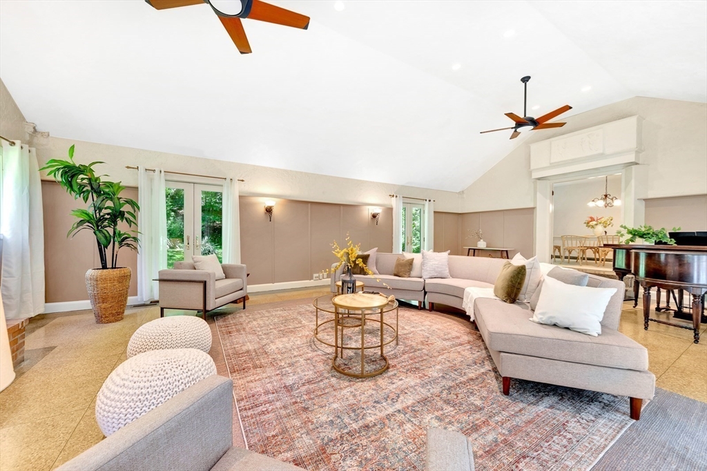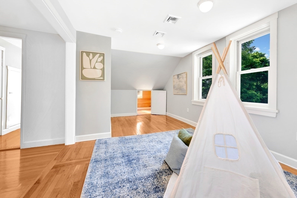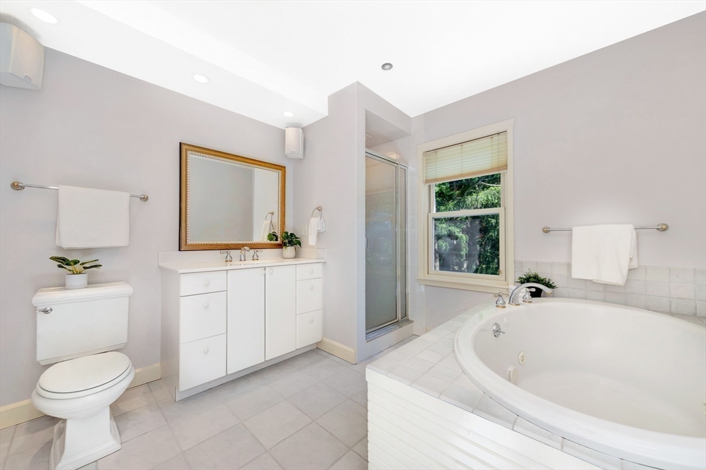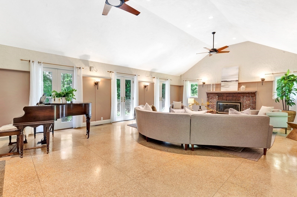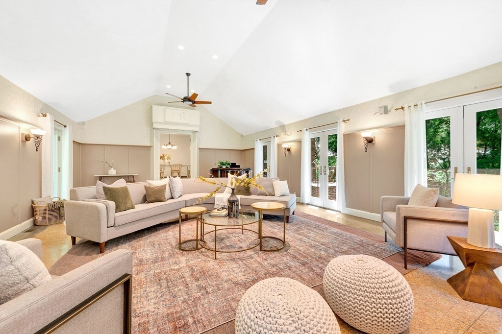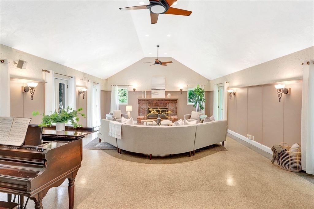 Tucked beneath a beautiful canopy of trees, you’ll find one of Arlington’s truest treasures, an enchanted, incredibly special villa framed by stone pillars, whimsical statues, & a winding cobblestone path. Echoing the spirit of 'The Secret Garden', this storybook retreat feels like a hidden castle wrapped in lush greenery, bluestone patios, & waves of perennials blooming all season long. Inside, floor-to-ceiling glass doors, soaring ceilings, a cozy wood-burning fireplace, & terrazzo floors set the tone to kick back & relax in the Great Room. Updated in the ’90s, the kitchen is fully equipped while a 1/2 bath & den/office/optional bedroom round out the main level. Upstairs are 6 spacious bedrooms, including a primary suite w/walk-in closet & bath, each w/thoughtfully placed windows or glass doors & a wrap around deck. At the top, a lookout tower invites little imaginations to run wild! This rare setting, one of the largest green spaces in town, offers ADU & future development pot'l!