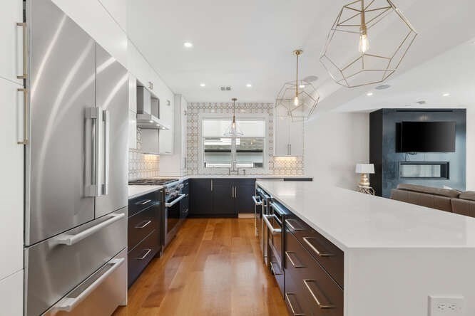 This 4-bedroom 4 full-bathroom top floor penthouse boasts unprecedented finishes. Amenities include a private elevator, 6” wide white oak flooring, oversized windows, integrated smart home technology, private outdoor space, and two garage parking spaces with electric car charging available. The custom kitchen is equipped with quartz and marble counter tops, stylish two-tone cabinetry, oversized kitchen island, and a top-of-the-line appliance package by Miele®. Jillian Balcony in the dinning area, private balcony in the master bedroom. The expansive 2610 square feet of living area unfolds across a single story, presenting a residence of considerable proportion and seamless movement. Located minutes away from numerous restaurants, shops, and public transportation. This novel home blends the brilliance of 21st century home design with the charm of Brookline's architectural traditions. Walking distance to Pierce and Brookline High. Fully furnished with designer Window's treatment.