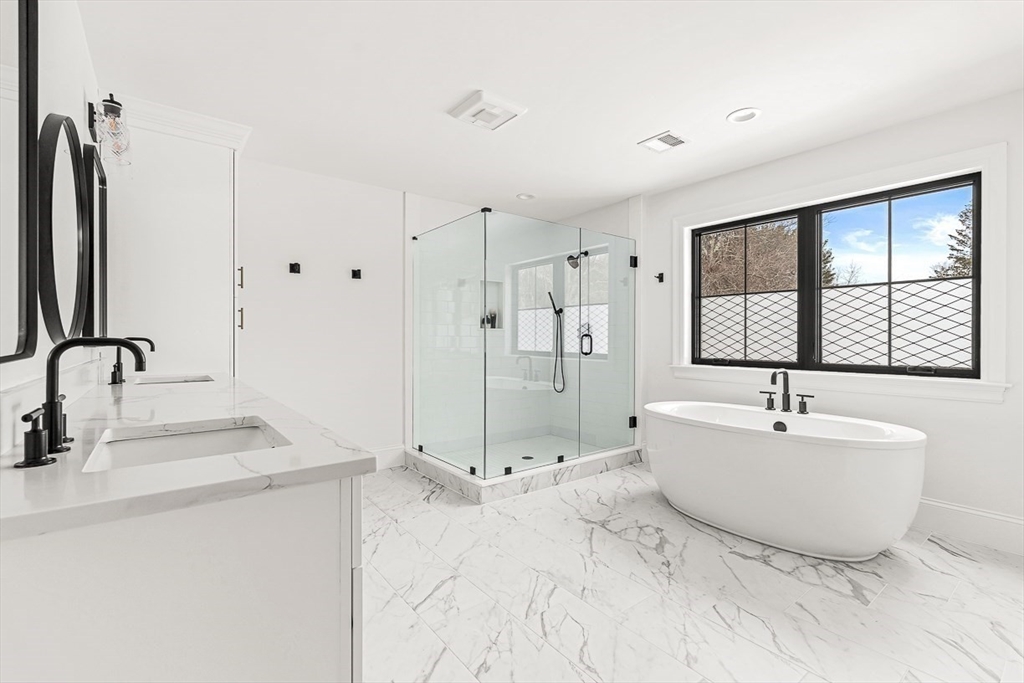 Timeless elegance meets modern comfort in Natick’s very special Hamlet Estates. Nestled on a beautifully landscaped 1.37 acre lot offering the perfect blend of space, style and convenience. From the dramatic two-story foyer to the open, beautifully designed living spaces, this 5-bedroom home impresses at every turn. The bright and spacious kitchen, with a casual eat-in area and deck access, opens to a generous family room with a gas fireplace. Formal dining and living rooms, a spacious mudroom and a flexible ensuite office/bedroom complete the first level. The stunning second level includes a serene ensuite primary with spa-like bath & private office, alongside 3 additional bedrooms, 2 baths, a well-equipped laundry room and pajama lounge. The expansive 3-car garage is a dream come true for car enthusiasts or anyone in need of extra storage. Close to shops, restaurants, walking trails, commuter rail, & St Benedict Classical Academy, you will truly enjoy all this home has to offer.