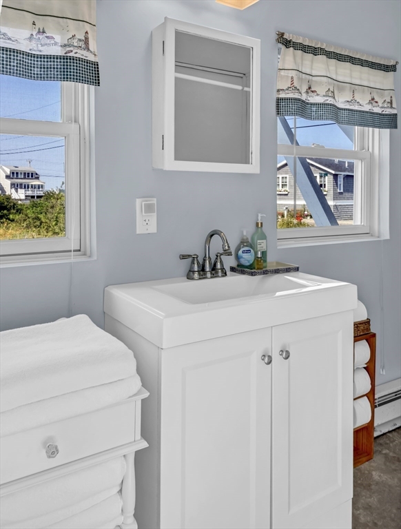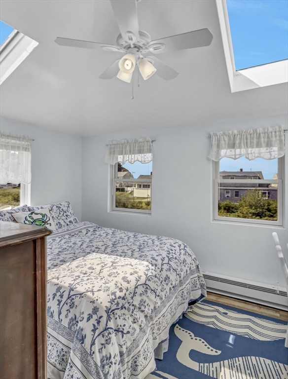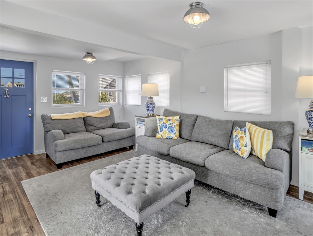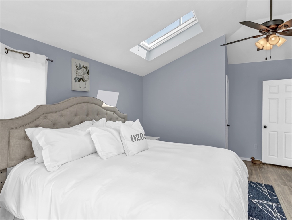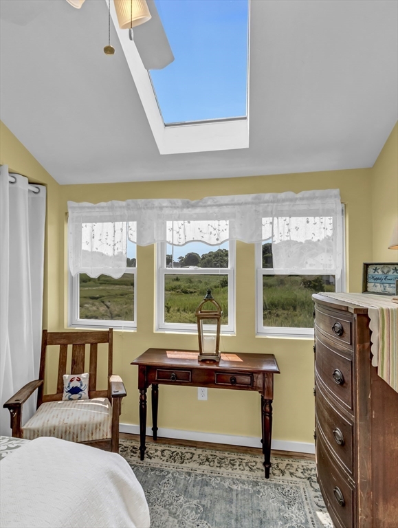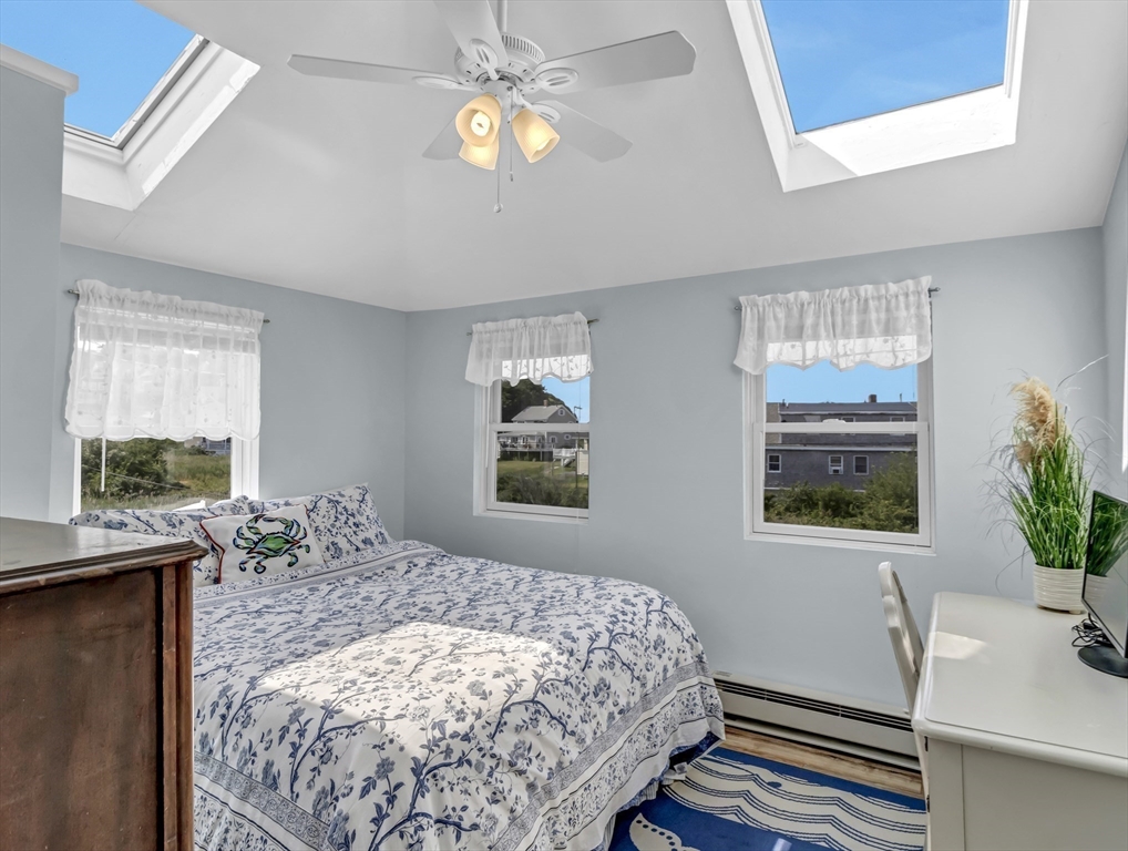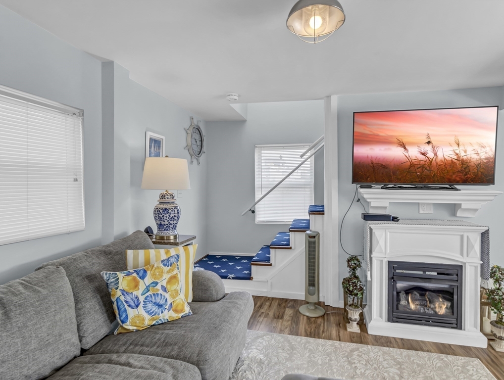 New to Market! Water View. Charming, beautifully appointed shabby-chic home located in the peaceful setting of Hull Village, just a short walk to Coast Guard Beach and Pemberton Point. The open floor plan is ideal for entertaining, featuring a living room with gas fireplace and a stylish stainless and butcher-block kitchen with two sliders leading to a spacious deck. First floor full bath includes a jacuzzi tub and stackable washer/dryer. The second floor offers a stunning primary bedroom with cathedral ceilings, skylights, ceiling fan, half bath, and a private 6x8 balcony with bay views and beautiful sunsets. Two additional bedrooms also feature cathedral ceilings, skylights, and ceiling fans. Wood laminate flooring throughout. Conveniently located just two minutes from the commuter boat with service to Boston and Logan Airport. The Yacht Club & Salt Water Club are close as well ! A wonderful coastal retreat—don’t miss this opportunity!