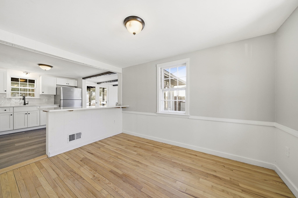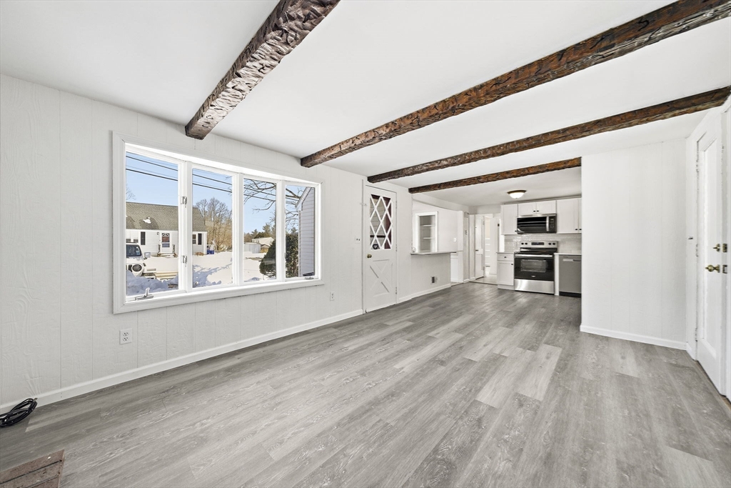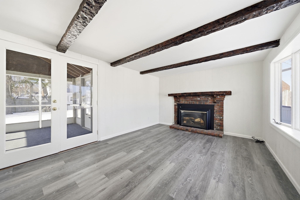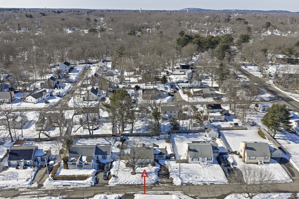 JUST LISTED in highly desirable neighborhood!Welcome to this charming expanded cape,offering the prefect blend of character+modern comfort.Nestled on a private fenced lot with an in-ground pool,this home is perfection.Inside you'll find freshly painted interior with 3 bedrooms,1.5 baths,including a convenient 1st fl bedroom.The heart of the home is a beautifully updated kitchen featuring NEW:cabinetry,quartz countertops,tile backsplash,+stainless appliances.This area flows seamlessly into an open-concept dining+family room,anchored by a cozy gas fireplace.Two additional bedrooms+large 1/2 bath complete the upper level.A sunroom off back of the house is perfect for relaxing+viewing the pool&yard. Enjoy peace of mind with many major updates including:new central AC+ oil burner/furnace(2021),new water heater(2025),oil tank (2017),30 yr shingle roof(2009)&pool cover 2020.In prime location,near major routes+commuter rail,this is a commuter's dream.SHOWINGS BEGIN w/OPEN HOUSES Sat/Sun12-2!