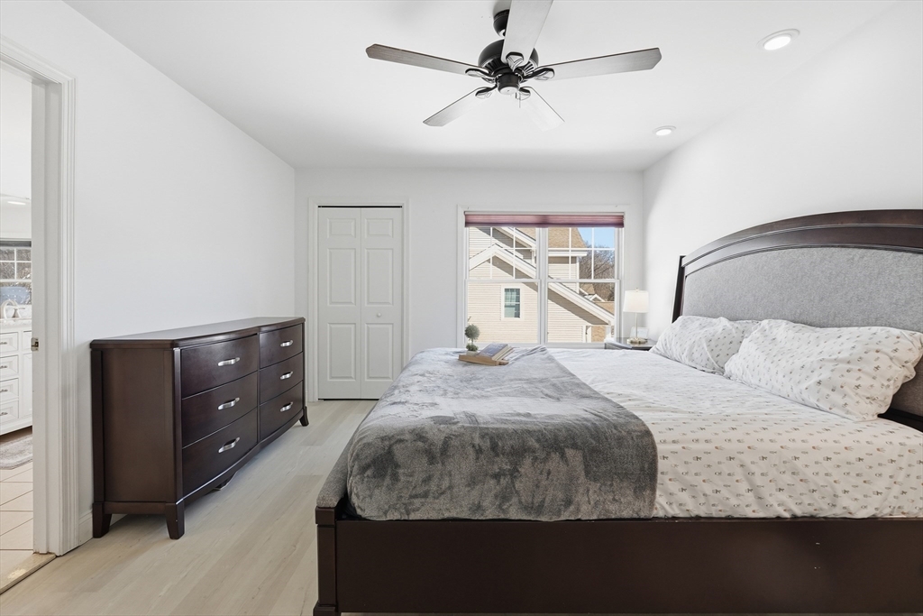 Welcome to this beautifully updated, move-in-ready townhome in the highly desirable Forest Hills community. Thoughtfully renovated with modern finishes, this spacious residence offers refined comfort and effortless living. Newly installed hardwood stairs lead to a sun-filled main level where the open-concept living and dining areas showcase elegantly restained flooring and a sleek contemporary feel. The kitchen offers generous workspace and an ideal layout for everyday living and entertaining. Upstairs, both bedrooms feature brand-new luxury vinyl flooring, including a serene primary suite with a refreshed en-suite bath and new double vanity. The finished walk-out lower level with updated flooring provides exceptional flexibility—perfect for a media room, home office, or guest space. Ideally situated near the Commuter Rail and MA Pike, this home offers the perfect blend of style, comfort, and convenience. Experience this exceptional home in person! Open Houses Sat & Sun 12–2.