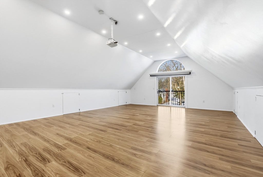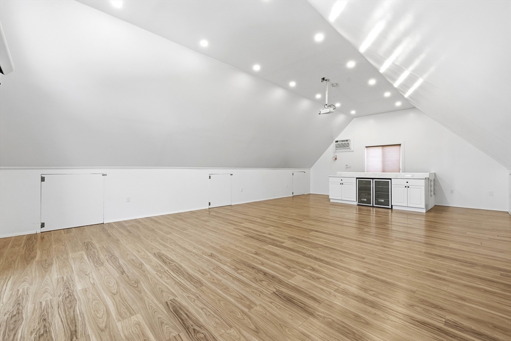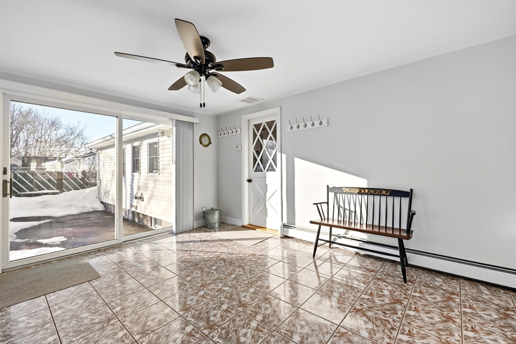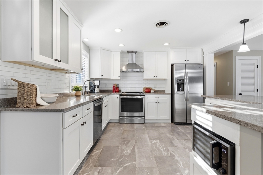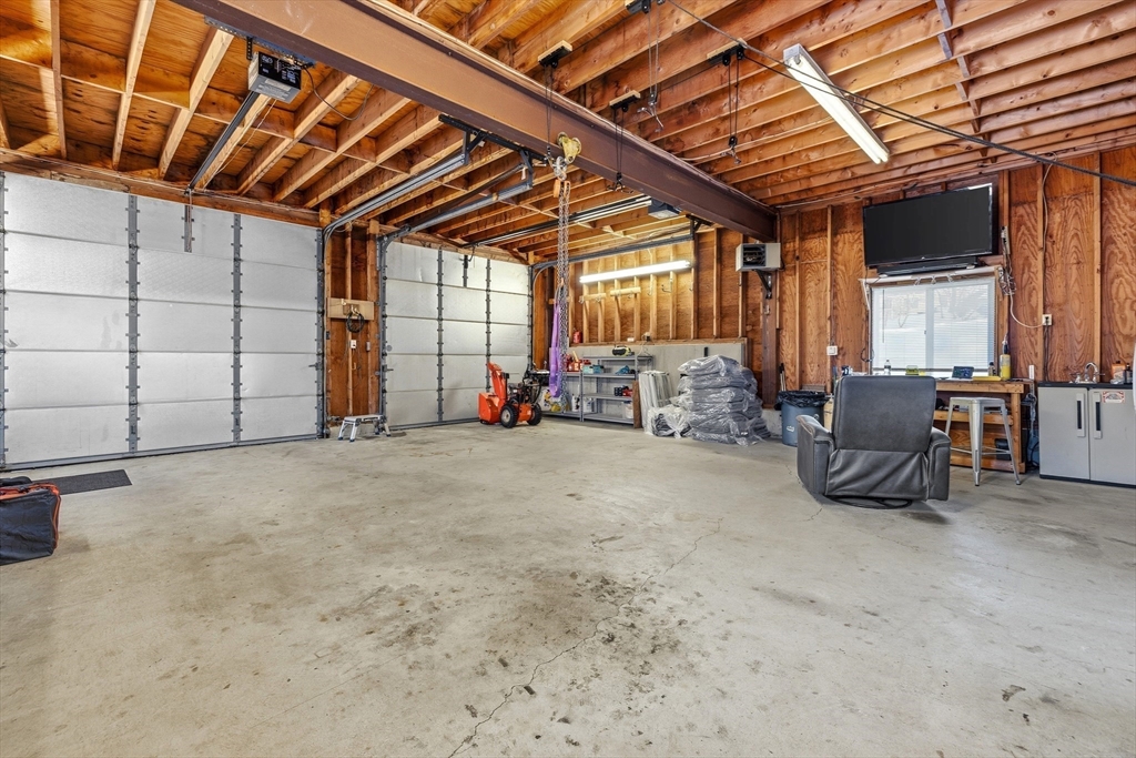 Pool season is coming! This beautifully maintained split entry home on a corner lot in a picturesque Peabody dead end neighborhood offers incredible indoor/outdoor living! Plus a **STANDOUT 28x32 OVERSIZED 2+ car garage/barn** w/finished upper level perfect for car enthusiasts, hobbyists, or workshop space. Inside, the main level features a beautiful white cabinet kitchen w/stainless steel appliances, island seating for up to 6 open to the dining area + fireplaced living room. The 4 season room off the kitchen overlooks the outdoor space. Three bedrooms w/hardwood floors include a primary bedroom w/ private half bath. The finished lower level boasts a family room with fireplace, full wet bar, full bath, office, and laundry with access to the one car garage. Outside, the fenced backyard is designed for entertaining with an in-ground pool (heat pump 2017), patio, and 3 driveways for lots of parking. Central air, irrigation, + convenient location w/easy access to major highways.