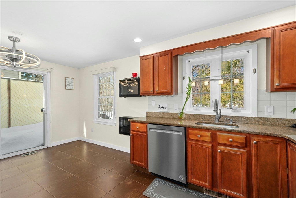 An exceptional opportunity awaits at 57 Harrington Farms.This attractive condominium residence is presented in great condition, poised to offer a distinguished living experience. The living room serves as a central gathering space, distinguished by its impressive high ceiling and vaulted ceiling which create an expansive atmosphere. A comforting fireplace provides a focal point for relaxation, while a thoughtfully placed skylight bathes the area in natural illumination, enhancing the overall sense of openness. Culinary pursuits are elevated within the thoughtfully designed kitchen, featuring elegant stone countertops that provide ample workspace for meal preparation. The stylish shaker cabinets offer abundant storage solutions, complemented by a tasteful backsplash that adds a refined touch to the entire space. Serene repose awaits within a bedroom, where a skylight introduces gentle daylight, fostering a tranquil environment for unwinding. Outstanding location, convenient to markets.