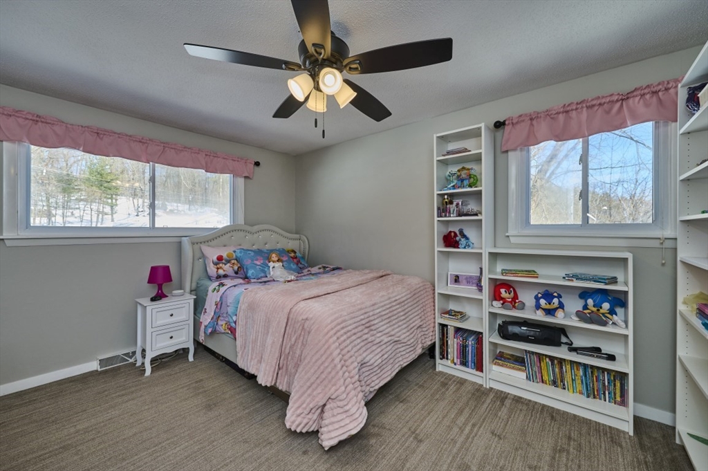 Step into a home where quality meets comfort. This sun-drenched 3BR/2.5BA residence sits on a 1.46 acre lot and is flooded with natural light, complimented by a brand-new oversized dining room window (2025). The heart of the home is a spacious kitchen featuring warm wood cabinetry, granite countertops, new appliances, and abundant storage. Temperature comfort is guaranteed with a new whole-house heat pump (2025) providing efficient central air and heating, complemented by a cozy pellet stove and a sleek electric fireplace. Retreat to the private primary suite at the end of the day. Downstairs is a wonderful family room with plenty of space for the whole family. The large deck overlooks a fully fenced yard that leads to a peaceful creek and includes a handy storage shed. Complete with a 2-car garage and solar panels this home truly has it all and is move-in ready!