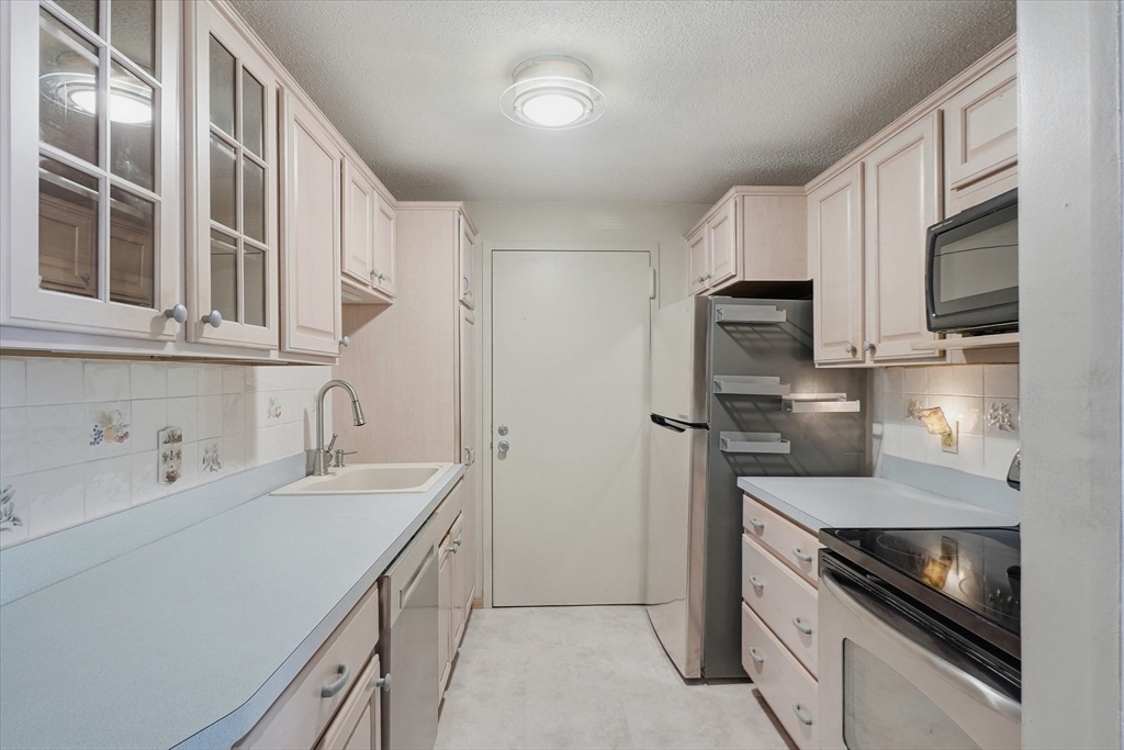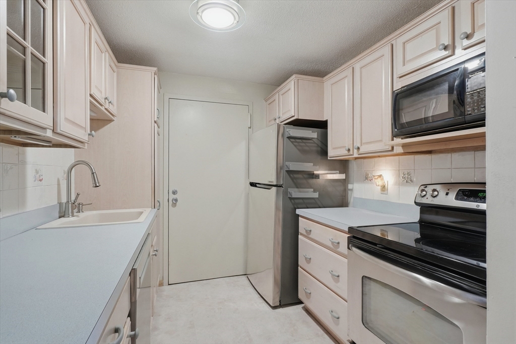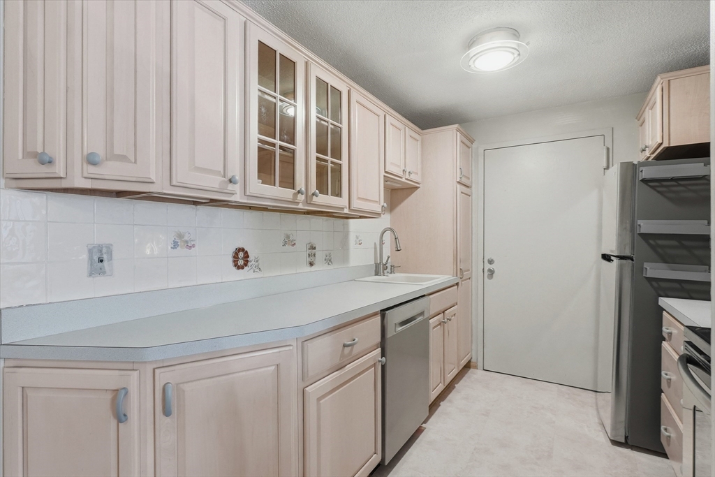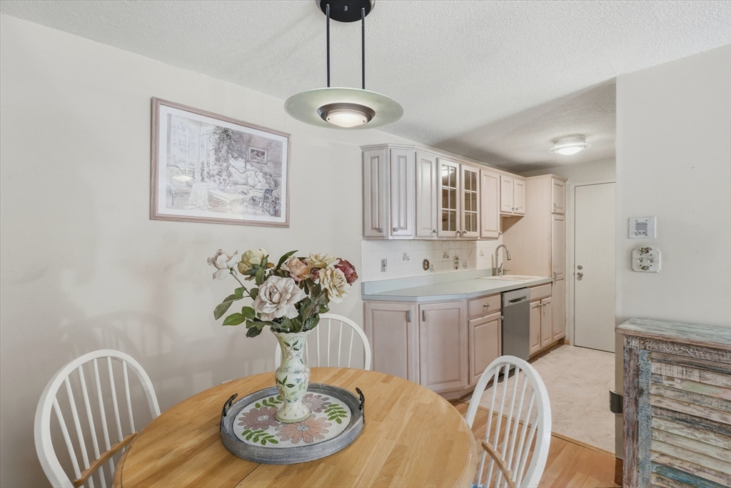 Top-Floor unit at Natick Village! Sun-filled, spacious one-bedroom corner with thoughtful upgrades throughout. Featuring upgraded vinyl laminate flooring, and an open-concept living & dining area that flows seamlessly into the updated maple kitchen with stainless steel appliances -new dishwasher, & pantry. Spacious bedroom offers 2 custom extra-large closets with six-panel doors and bamboo floors. The updated bath includes a modern vanity W/ Corian counters & newer toilet. Central air and a 2-year-old HVAC system & 4-year H2O. Laundry rm is conveniently located next to the building. Natick Village offers fantastic amenities, including an in-ground pool, tennis & pickleball courts, a fitness center with yoga room, clubhouse, EV charging stations, & professionally maintained grounds with snow removal. Pet-friendly (one pet allowed). Unbeatable commuter location directly across from the West Natick Commuter Rail station & minutes to Route 9, Route 30, & the Ma Pike! OH Sat 3/7 12-2