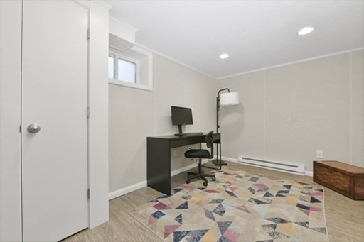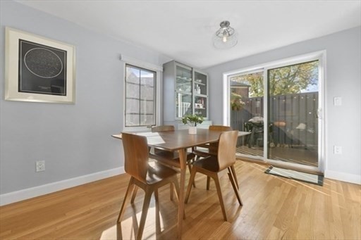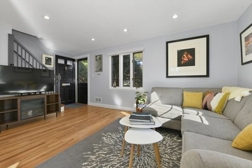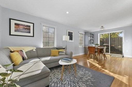 Stunning Corner Townhouse in Watertown’s “The Village”. Bright, beautifully updated, and move-in ready, this desirable corner townhouse offers the perfect blend of style and functionality. The first floor features an open-concept living space with three walls of windows, gleaming oak floors, and recessed lighting that create a warm, inviting atmosphere. The dining area opens through sliding glass doors to a private, enclosed deck, perfect for morning coffee or entertaining guests. The modern kitchen boasts quartz countertops and stainless steel appliances, ideal for cooking and hosting. Upstairs, you’ll find two spacious bedrooms with oak floors and a full, windowed bathroom featuring tile floors and a tiled tub-shower combination. Partially finished basement adds versatile space for a home office, gym, or media room, with additional unfinished areas for laundry, storage, and utilities. Enjoy the perks of a professionally managed community, including a clubhouse and pool.
