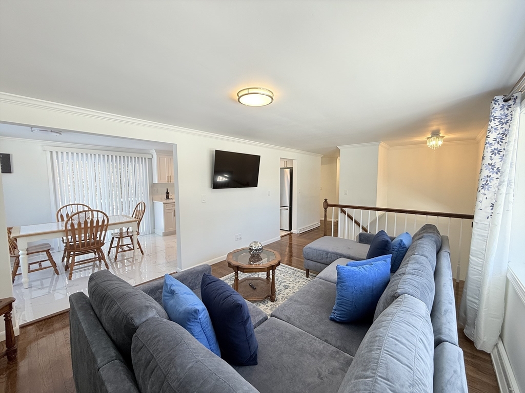 Welcome to this beautiful & tastefully renovated home located in a quaint neighborhood, & close to the commuter rail, elementary school & center of town. Enter through the front door and you will notice all the natural light beaming through the large bay windows located in the fireplace Living Rm & Kitchen. The beautifully renovated Kitchen w/skylight, porcelain floors, white cabinets, quartz countertops & S/S appliances has direct access to the over-sized deck w/views of the flat & tree-lined backyard. The Main Floor includes three good sized Bedrooms & a beautifully renovated Full-sized Bathroom. Head down to the lower level and you will find two additional finished rooms with full sized windows & closets that allows for additional flexible space. The Laundry area is located in the lower level as well as walk-out access to the backyard. Enjoy the newly installed central air for added comfort during the summer. This home is move-in ready w/nothing to do but unpack & enjoy!