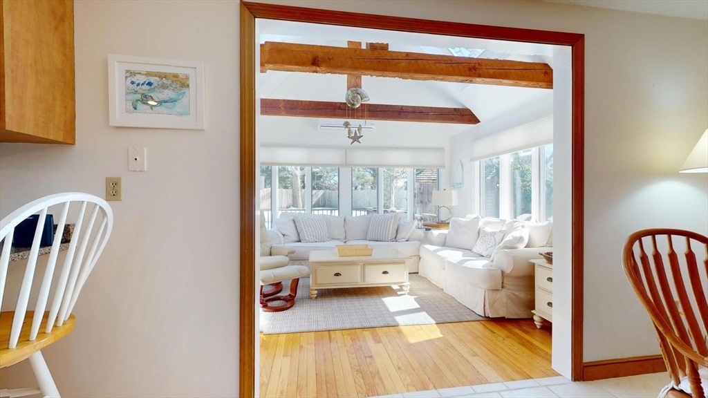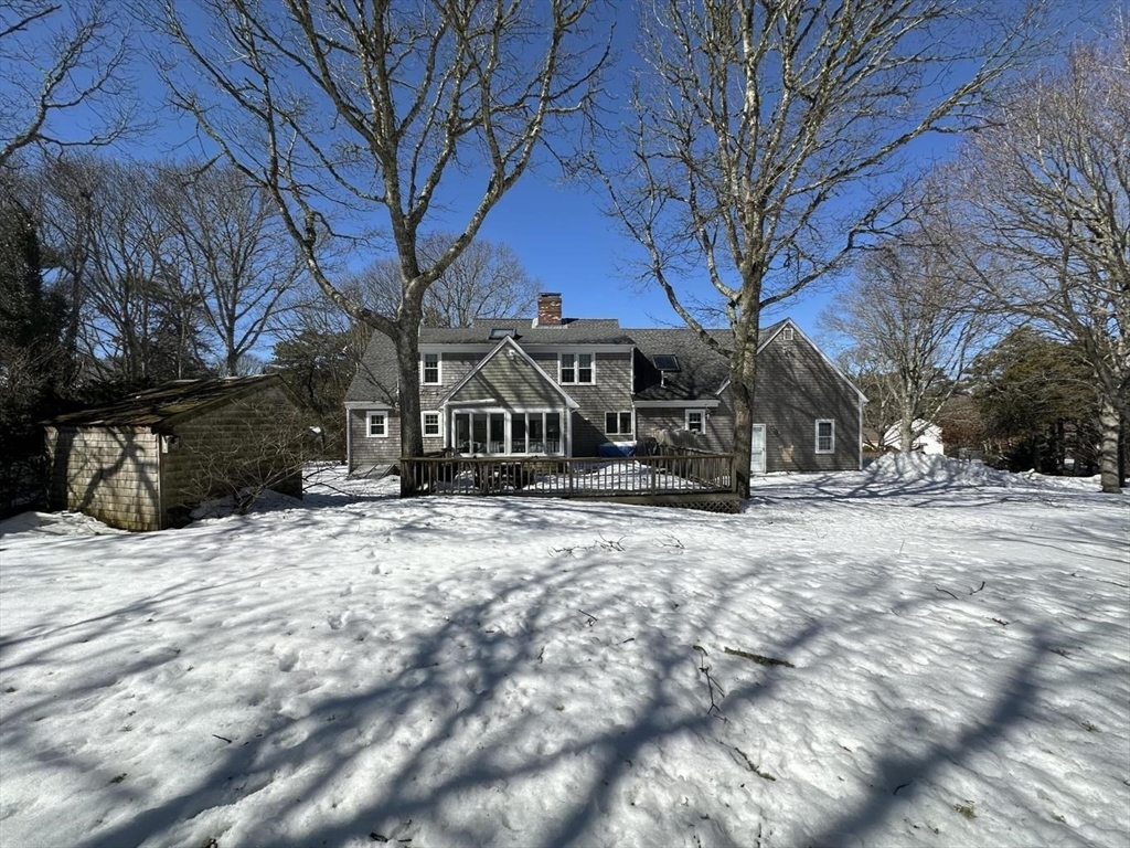 Rare opportunity to purchase a large custom cape in the beautiful Farm Lane neighborhood in the South Dennis historic district with beach and docking (available on an annual lottery for slip space). Lovely setting up from the road, the interior is sunny, bright and open. There's a big country kitchen with gas fireplace and a large living room with fireplace as well. The kitchen/ dining area is open to the wonderful skylit cathedral ceiling family/sun room which opens to the large deck. There's a formal dining room as well and half bath with the first floor laundry. The main floor also features the large primary suite with full bath and walk in closet. Upstairs are 2 huge bedrooms with one having direct bath access and a finished nursery or study off it. The huge dry basement has 3 more finished rooms and there is bulkhead access to the back yard. You're not too far from ocean beaches as well and all of Cape Cod's amenities are close by.
