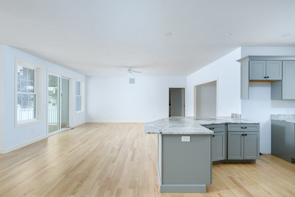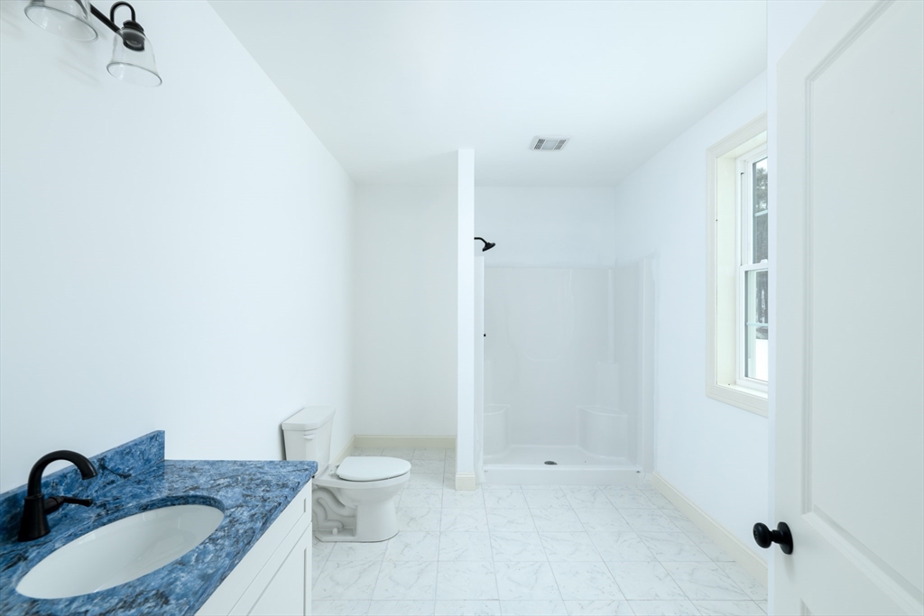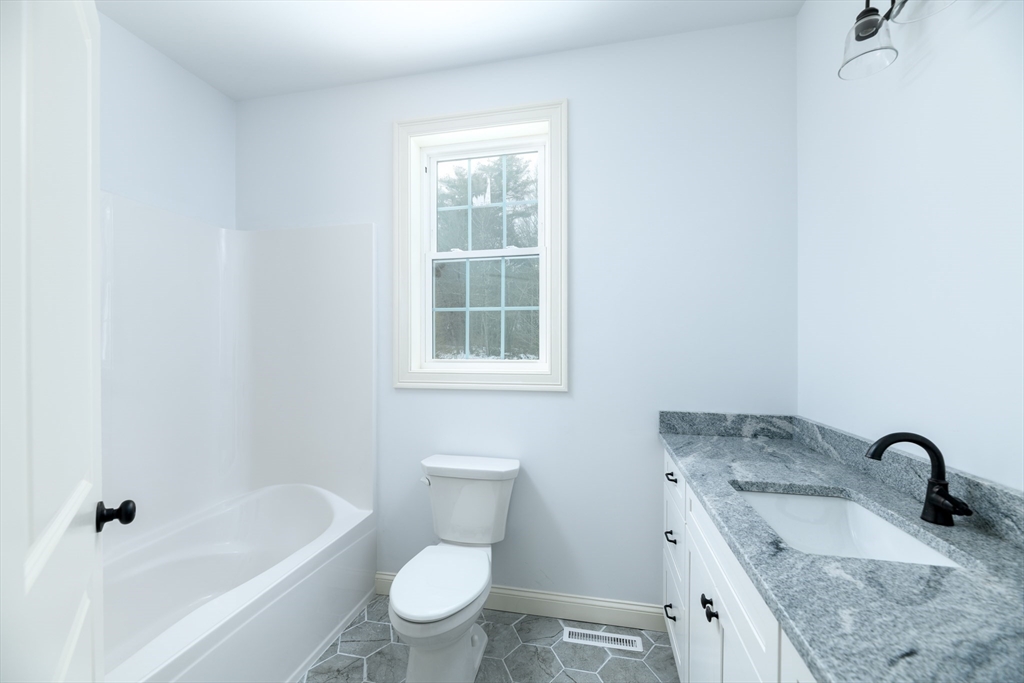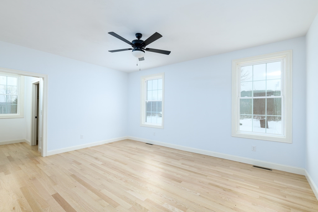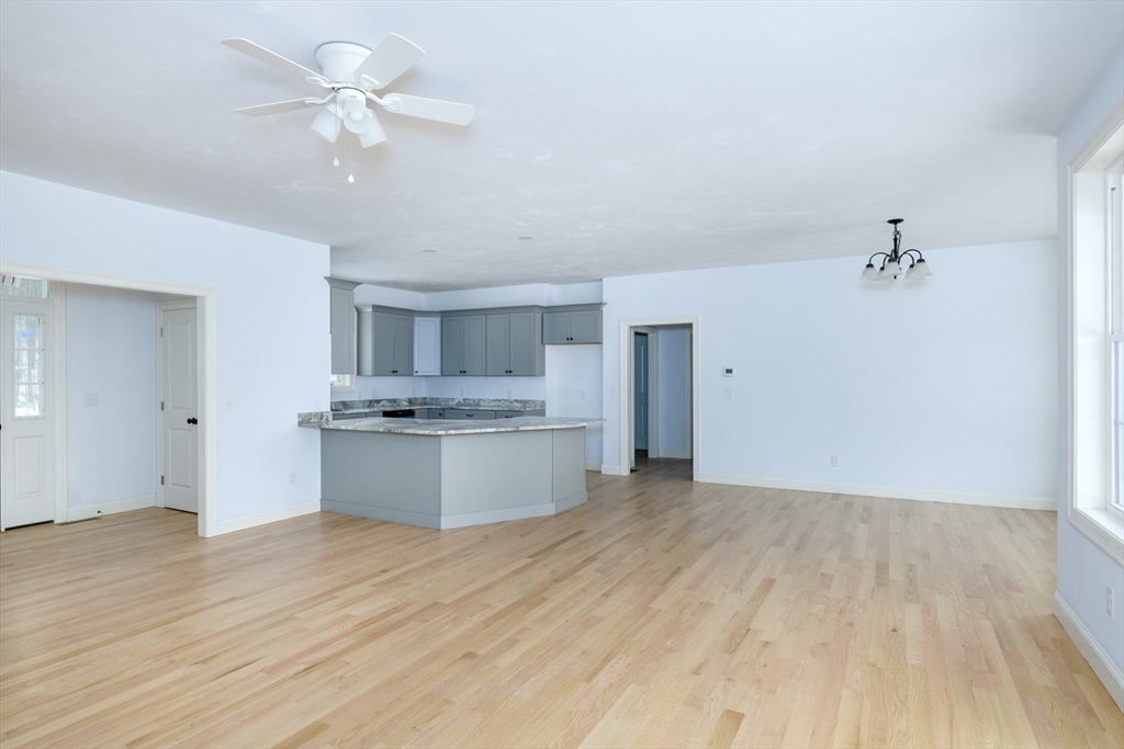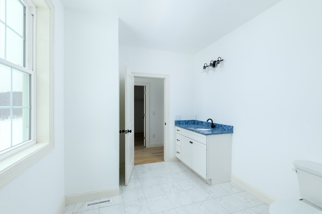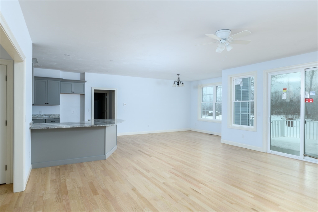 Brand-new 2,000 sq ft ranch just minutes from the center of Ware! This thoughtfully designed single-level home offers an open-concept layout connecting the kitchen, dining, and living areas. Perfect for everyday living and entertaining. Features include 3 spacious bedrooms and 2 full baths, including a large primary suite with private bath and oversized walk-in closet. Hardwood floors, tiled baths, and modern finishes such as soft-close cabinetry add style and quality throughout. Convenient laundry closet with washer/dryer hookups. Full basement provides excellent storage or future finishing potential. Large windows fill the home with natural light, and a rear deck extends your living space outdoors. Energy-efficient all-electric heating and cooling complete this move-in-ready home.