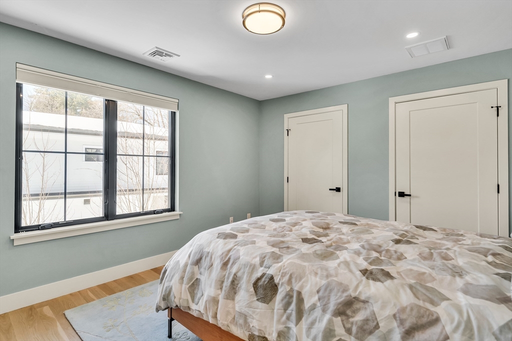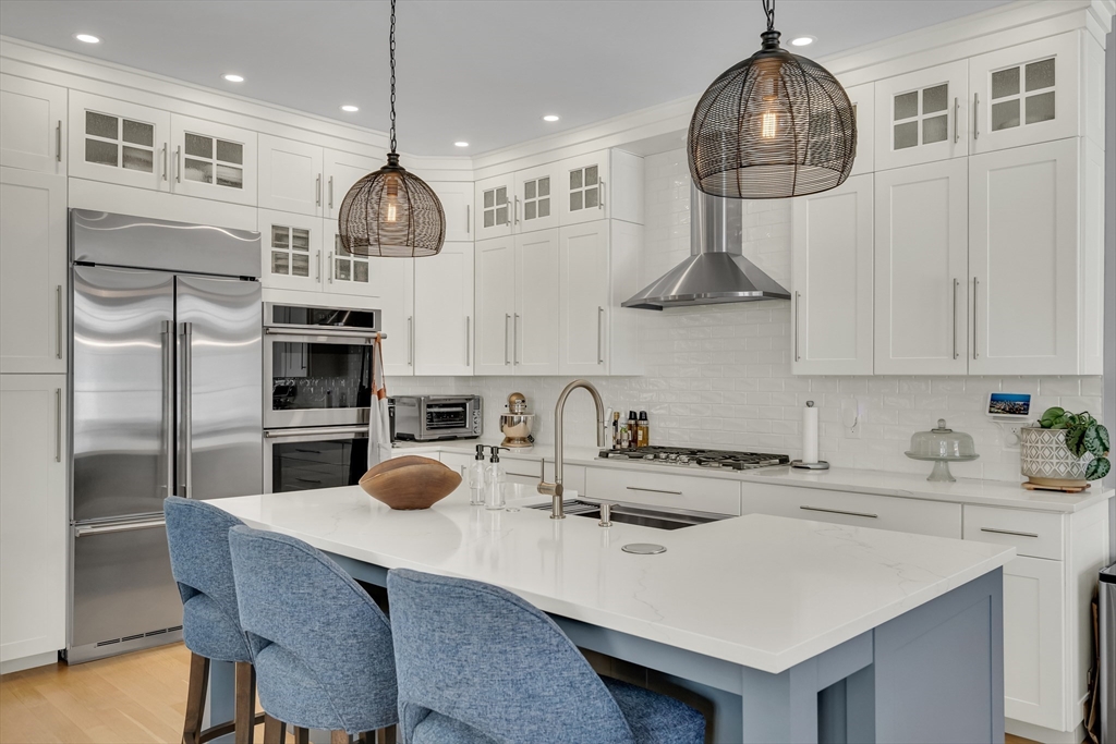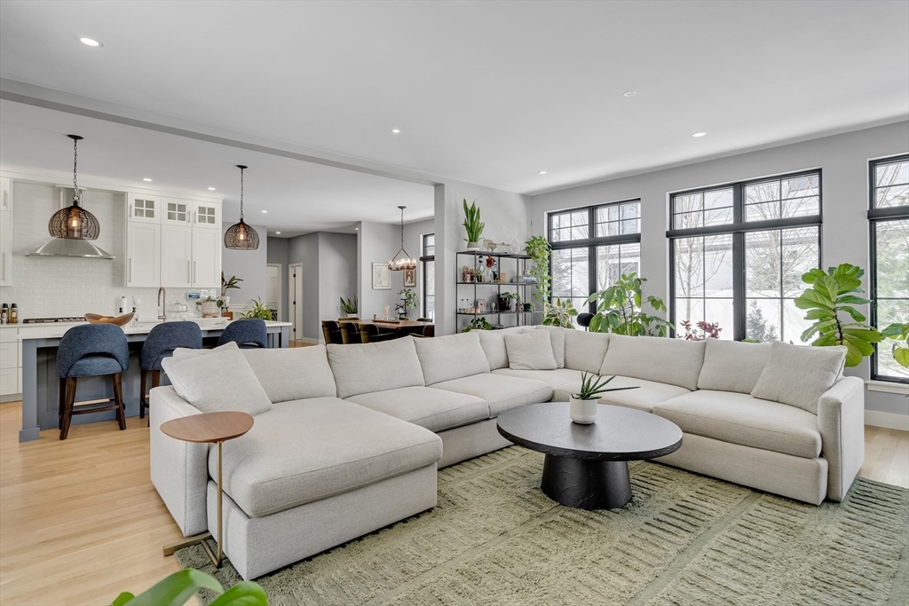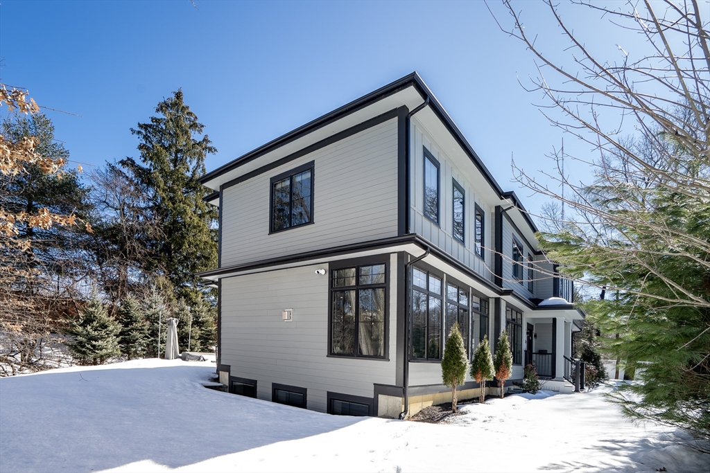 A stunning 2022 custom built home offering over 4,400 square feet designed from the ground up for exceptional interior quiet. Step inside and the outside world falls away.The open layout features nine and a half foot ceilings, expansive windows, and a chef's kitchen with built-in refrigerator, double ovens, commercial cooktop, farmhouse sink, and oversized island. The living room includes a linear gas fireplace and sliding doors to a private deck and yard. Upstairs, the primary suite offers a floating double vanity, curb-less shower, water closet, and walk-in closet. The lower level delivers a dedicated media room, guest suite with private bath, and a twenty by twenty foot recreation room. Five bedrooms, four and a half baths, and a private home office complete the floor plan. High efficiency windows block sound transfer. Modern insulation wraps every level. Solid construction and premium sealing ensure the calm holds throughout.