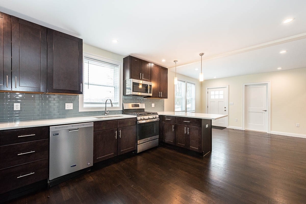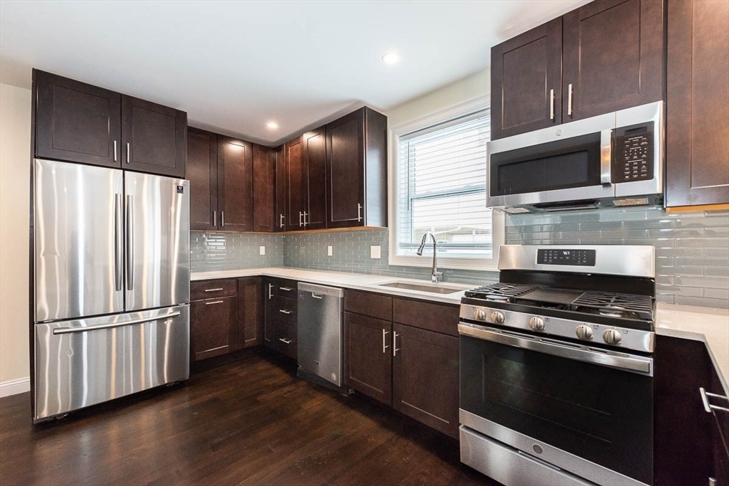 Large gut-renovated duplex in Medford, ideally located near Tufts University, Magoun Square, and Davis Square. This spacious home features four bedrooms, four bathrooms, plus a dedicated office. The layout includes a large open-concept kitchen and living room, perfect for comfortable living and entertaining. The modern kitchen is equipped with stainless steel appliances and granite countertops, complemented by hardwood floors throughout. Additional features include central A/C, in-unit laundry, and off-street parking. Pet friendly. No security deposit required.