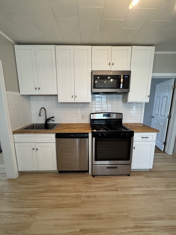 Available September 1st! Freshly renovated, 3 bedroom 1 bathroom apartment just one mile from Malden center with two off-street parking spots and plenty of additional free street parking. Refinished hardwood floors, plenty of natural light, updated kitchen and bathroom. Eat-in kitchen features brand new white cabinets, tile backsplash, butcher block countertops, floating breakfast bar and spacious pantry. Open concept living room and kitchen combined with a wonderful common backyard are perfect for entertaining. Private access to three season porch. In-building laundry. No smoking. No pets.