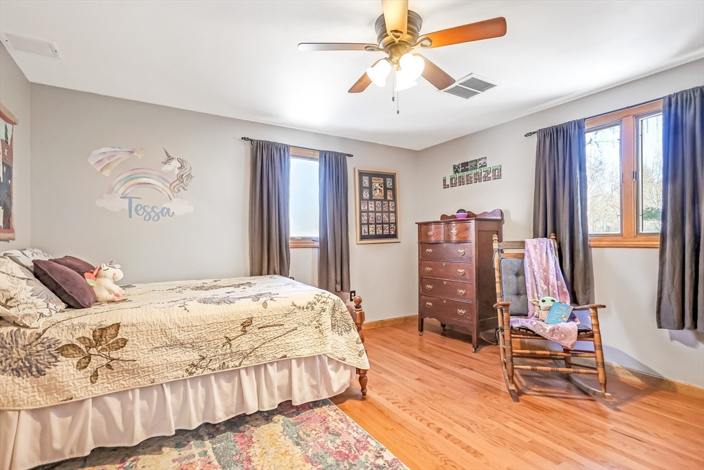 Meticulously maintained, maintenance-free vinyl-sided contemporary set on a quiet dead-end street with desirable northwest exposure for beautiful natural light. Home was built by seller and has been lovingly cared for. This sun-filled, open-concept 4-bedroom, 3-bath home features a beautiful white kitchen that flows into the living area with a working fireplace that is a gorgeous focal point of the family room. One bedroom located on main level. The en-suite primary bedroom with jacuzzi tub and separate shower offers comfort and privacy, while A/C pumps keep the home comfortable year-round. Enjoy a flat, level yard perfect for outdoor activities. Full basement for storage. Additional highlights include generator hookups, an attached garage plus an awesome detached two car garage for extra storage or hobbies. Convenient location close to shopping and major highways. A true move-in-ready home in a desirable setting. Septic to be replaced by seller. First showing 3/21/26 12-2:00 p.m.