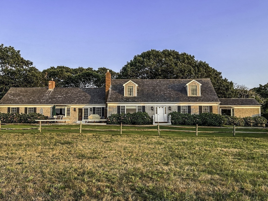 Sweetened Water Farm ~ Just off the main road, past an idyllic horse barn and conserved association land, you’ll find this eight-bedroom residence that sits prominently on 2.4 acres. The sprawling main house, an expanded classic Cape featuring separate living areas, both inside and out, and six bedrooms, including two first-floor en-suites, overlooks the rolling pastures with grazing horses. Private guest quarters above the detached oversized garage offer additional comfortable accommodations. Sweetened Water Farm combines the tranquility of an up-island location with the convenience of being just moments from the boutiques, restaurants, and harbor of downtown Edgartown. A home for all generations in a setting like no other.