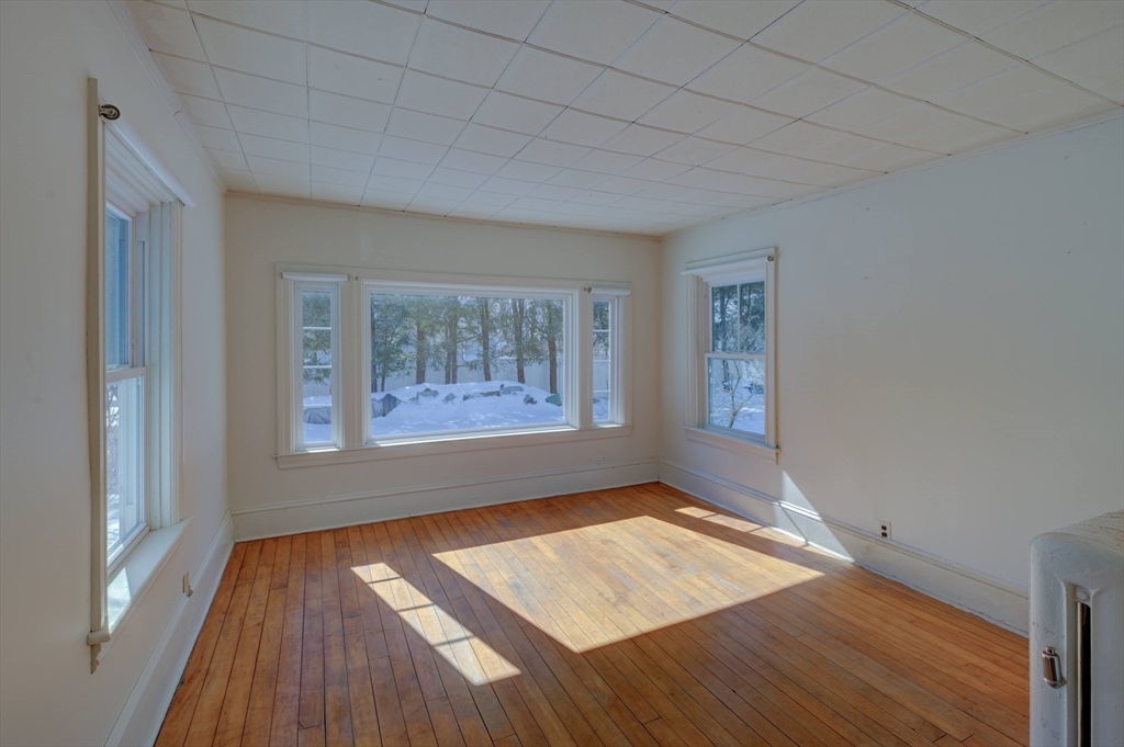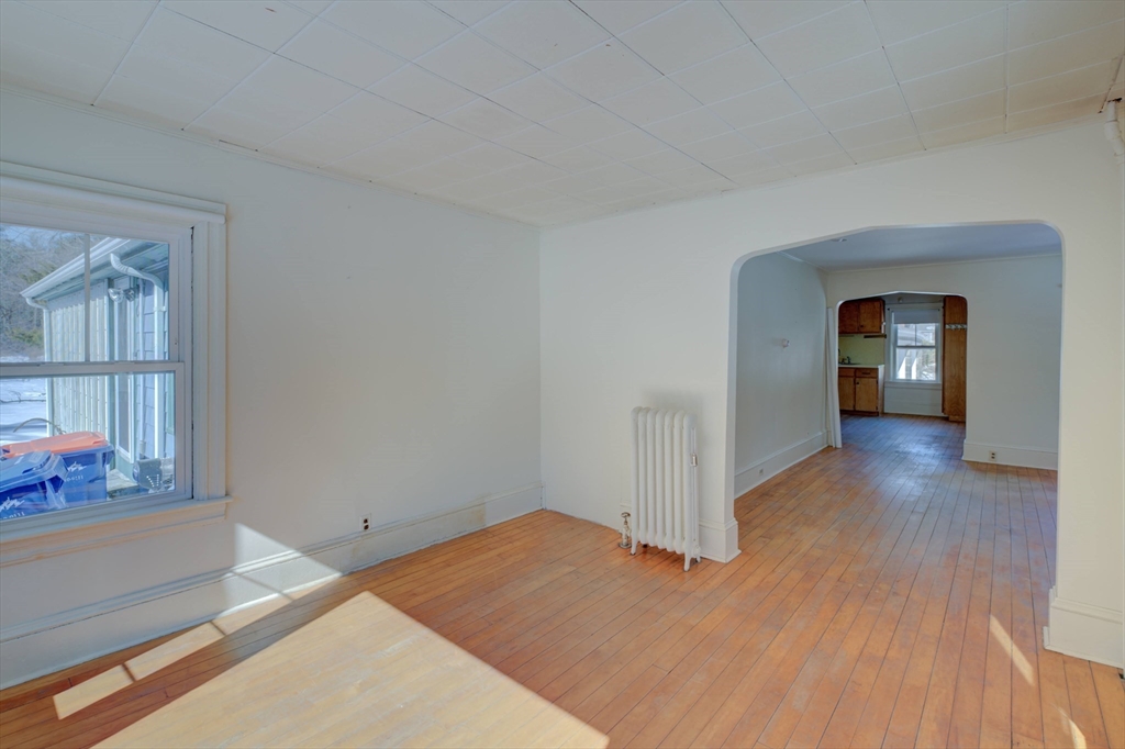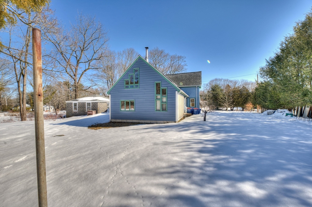 Originally built as a single family with a secondary unit added in 1977, this legal 2 family farmhouse sits on 1.78 acres, offering loads of potential, lots of privacy and endless options. Both units have first floor entryways and second story bedrooms. The main unit offers 1212 SF comprised of kitchen, living, and dining room as well as a sunny enclosed front porch downstairs and 3 beds with a full bath on the second floor. Unit 1 is heated by traditional gas heat via steam radiators. The second unit is more compact offering 622 SF with kitchen, bath and combined living/dining space downstairs and 1 bedroom upstairs in the modern open loft area. Unit 2 is heated by a Trombe solar wall and wood stove. The large lot has many blueberry bushes, a large garden area and a generous storage shed as well as a detached 2 car garage. There is a cesspool that will need to be replaced. There is potential to convert back to a single family, expand, replace or rent. Bring your vision!