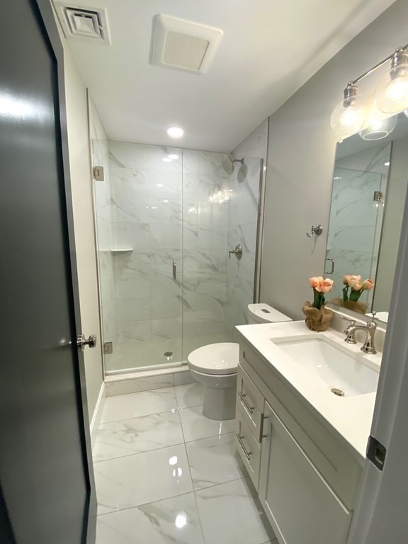 This gorgeous 1 bed, 1.5 bath is gut renovated in East Boston’s desirable Eagle Hill neighborhood. The open floor plan provides great space for living and entertaining. The kitchen features high-end Jenn Air stainless-steel appliances, custom cabinetry, and Carrera quartz counter tops. The bathroom offers custom vanity & marble floors. The master bedroom offers an en-suite bathroom and walk-in closet. Additional features include a private outdoor patio, recessed lighting throughout, Nest learning high efficiency thermostat, video Ring doorbell, Maytag washer/dryer, 1 deeded off street parking spot, & oak natural grey floors. The location is in close proximity to beaches, Star market, restaurants, & a short commute to downtown Boston. Don’t miss out on the opportunity on this amazing opportunity!