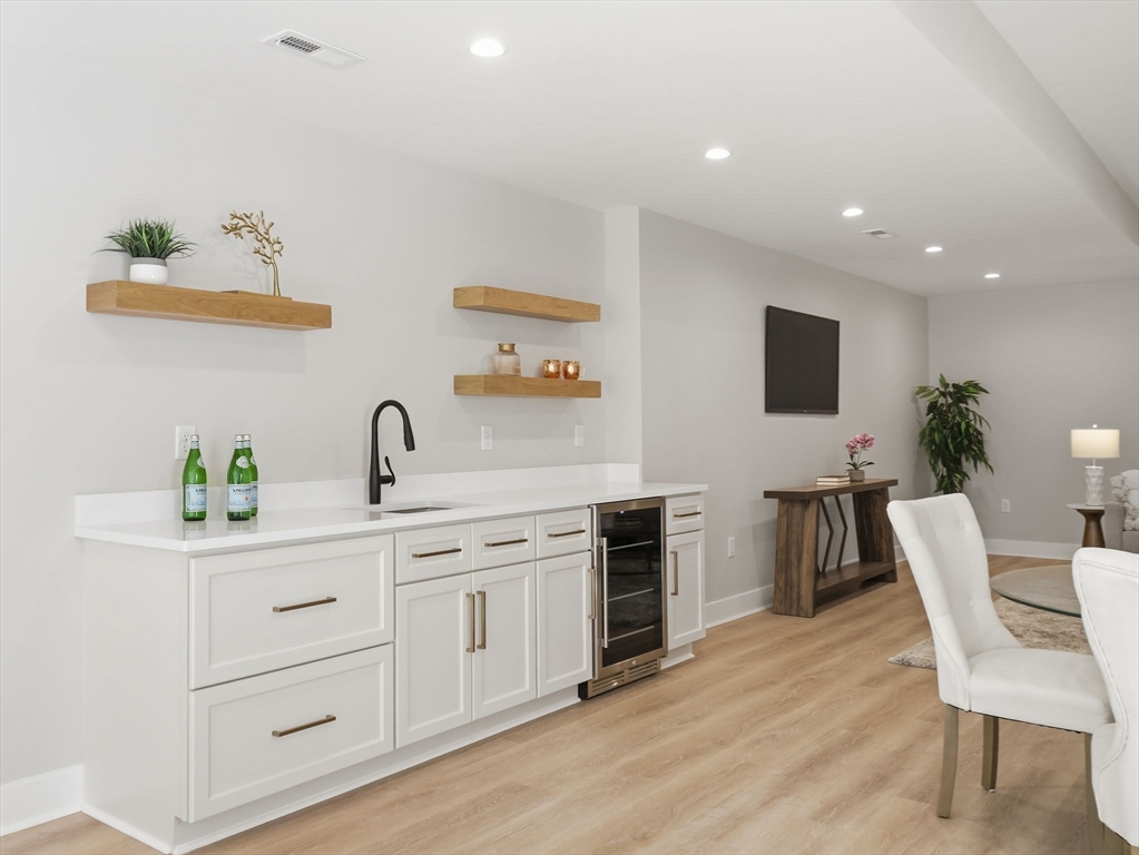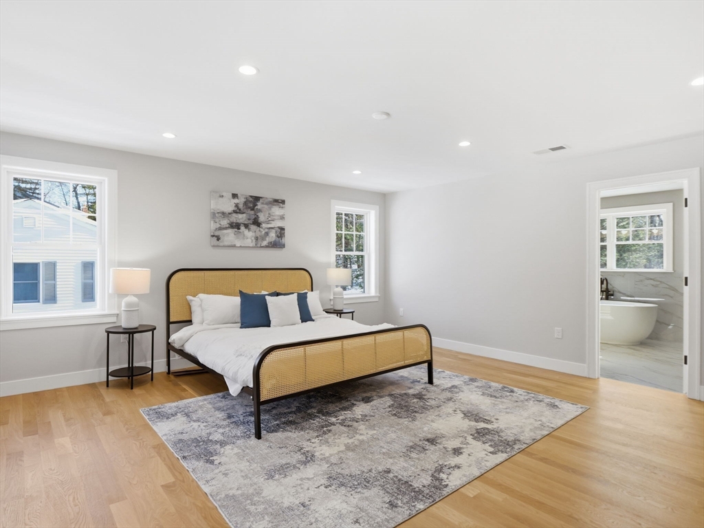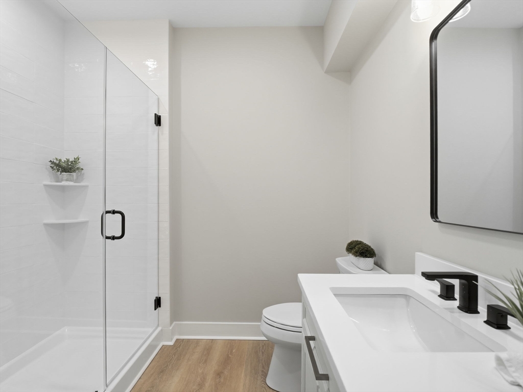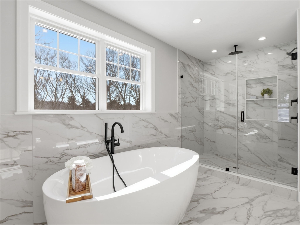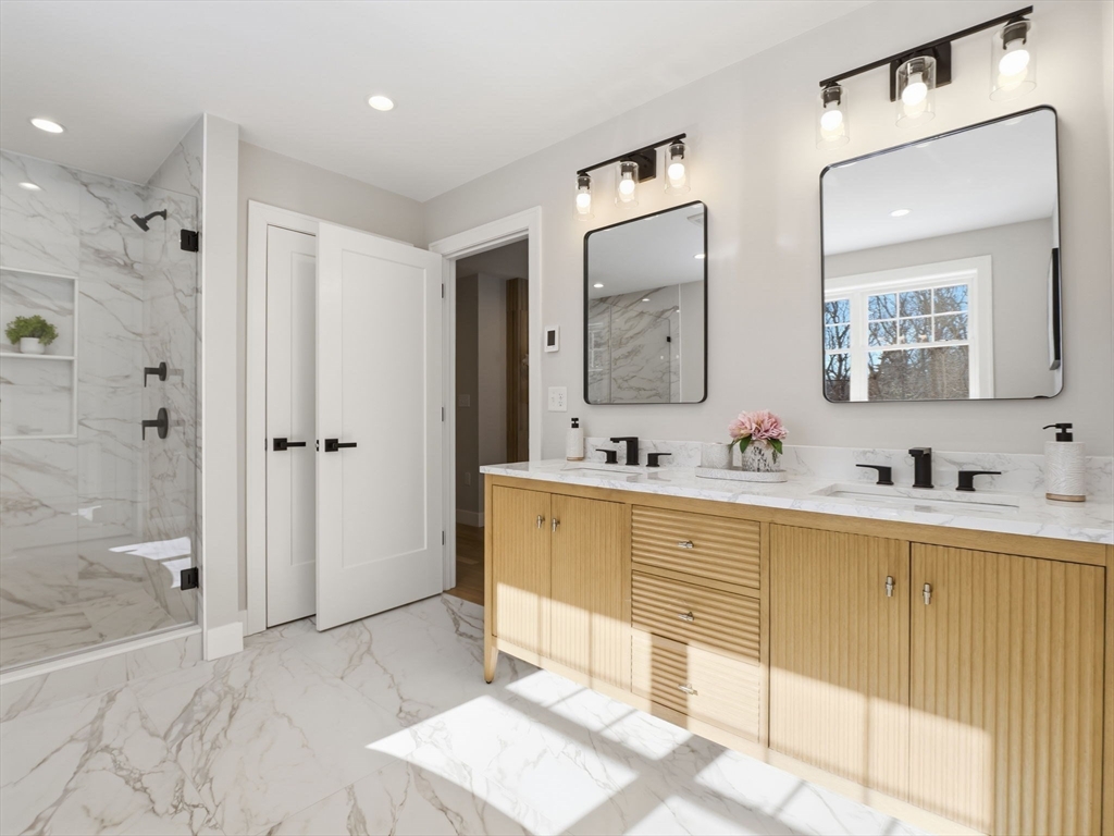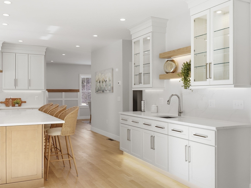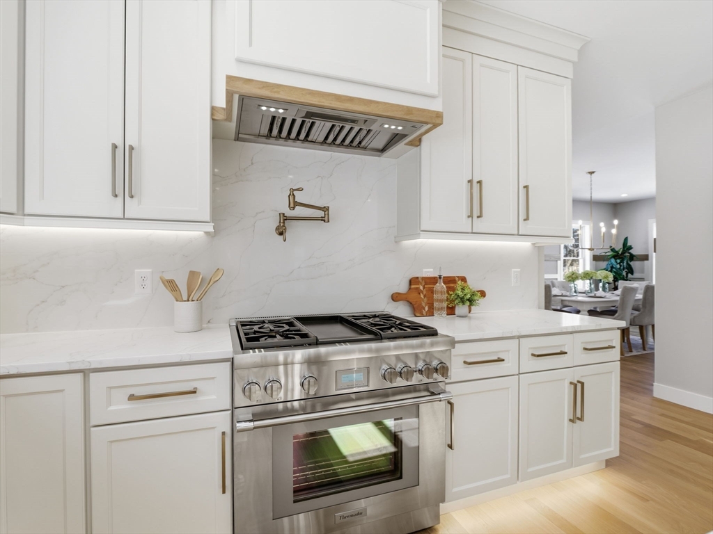 Welcome to 1 Delisio Drive, where luxury design meets everyday comfort. This exceptional NEW construction in a PRIME Andover location offers 5 bedrooms, 6.5 baths, and over 5,000 sq ft of thoughtfully designed living space across 3 finished levels. White oak hardwood floors, LVP in LL, custom millwork, 2 GAS fireplaces, & designer LED lighting create a refined yet welcoming atmosphere throughout. The chef’s kitchen is a true centerpiece featuring Thermador appliances, an oversized quartz island, pot filler, wet bar, walk-in butler’s pantry, and floating oak shelving. 3 of the 5 bedrooms offer private ensuite baths, including a flexible first-floor primary suite option. The sun-filled walk-out lower level adds incredible versatility w/private office, full bath, wet bar, & expansive entertainment space. Outdoor living shines with a composite deck & stone patio w/fire pit, perfect for gatherings. Additional highlights include irrigation,2-car garage, tankless HW, & efficient 4 Zone HVAC.