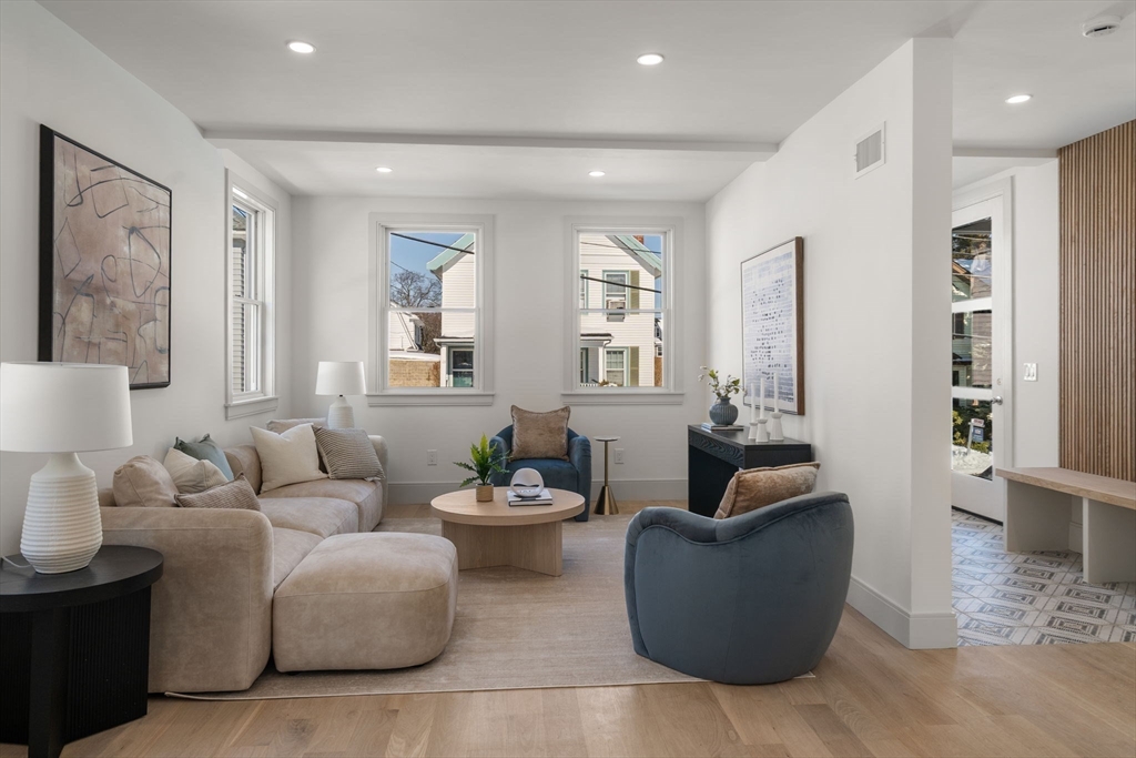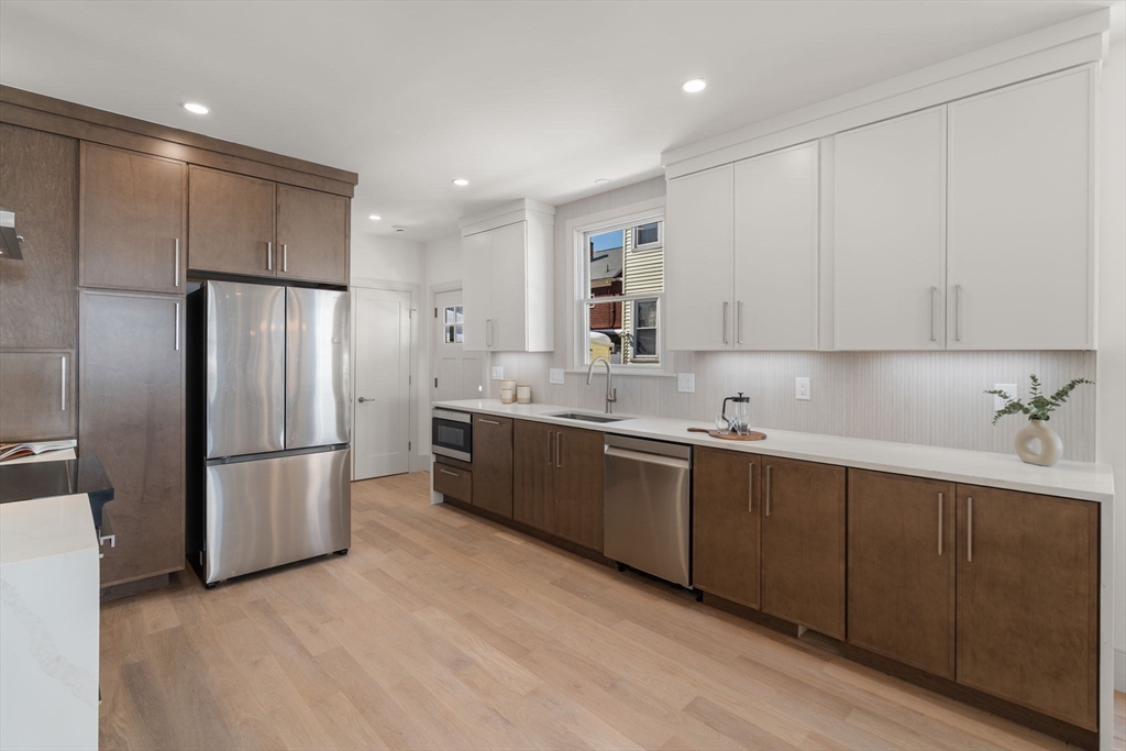 Masterfully executed brand new duplex delivering a thoughtfully designed home with every modern amenity imaginable while blending the best of urban & suburban living in desirable Watertown. Set on coveted Clyde Rd, this sophisticated bright 4 bed, 3 full bath residence showcases refined interiors & modern design. Chef-caliber kitchen anchors the home w/ stainless steel appliances, induction cooking, quartz counters, bespoke cabinetry & exceptional pantry storage, flowing seamlessly into sunlit living & dining spaces ideal for intimate gatherings & large-scale entertaining. Main level primary retreat offers generous proportions, custom walk-in closet w/ spa inspired bath with double vanity. The finished lower level provides 2 additional bedrooms, a full bath, family room, flex bonus space w/ storage & laundry. Central AC, 2 parking spaces, EV ready, complete this exceptional offering moments from Watertown Sq, Arsenal Yards, shops, restaurants, transit. OH Sat & Sun 12-1:30